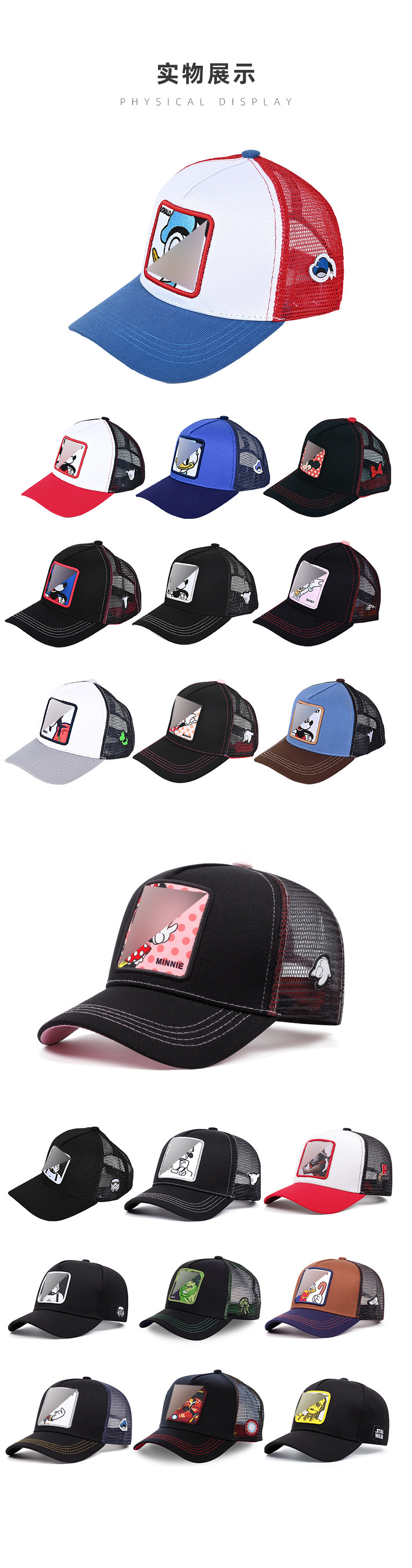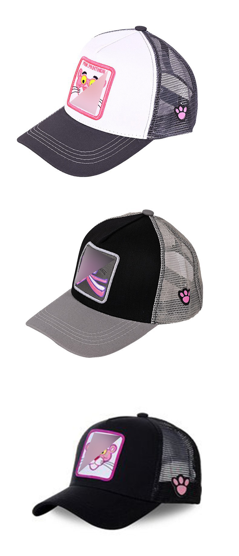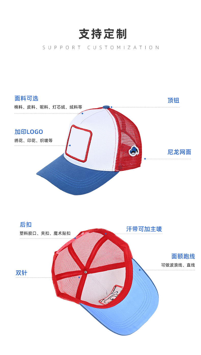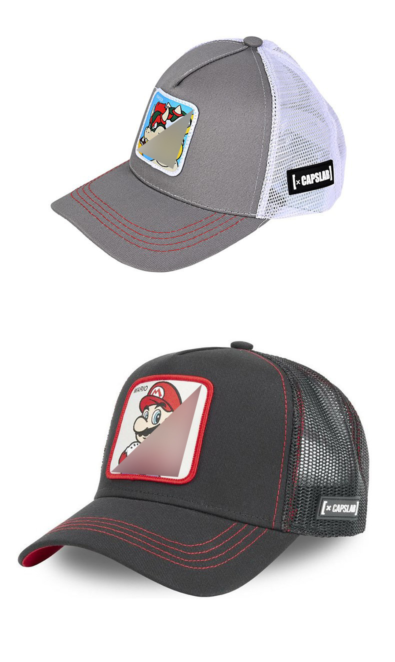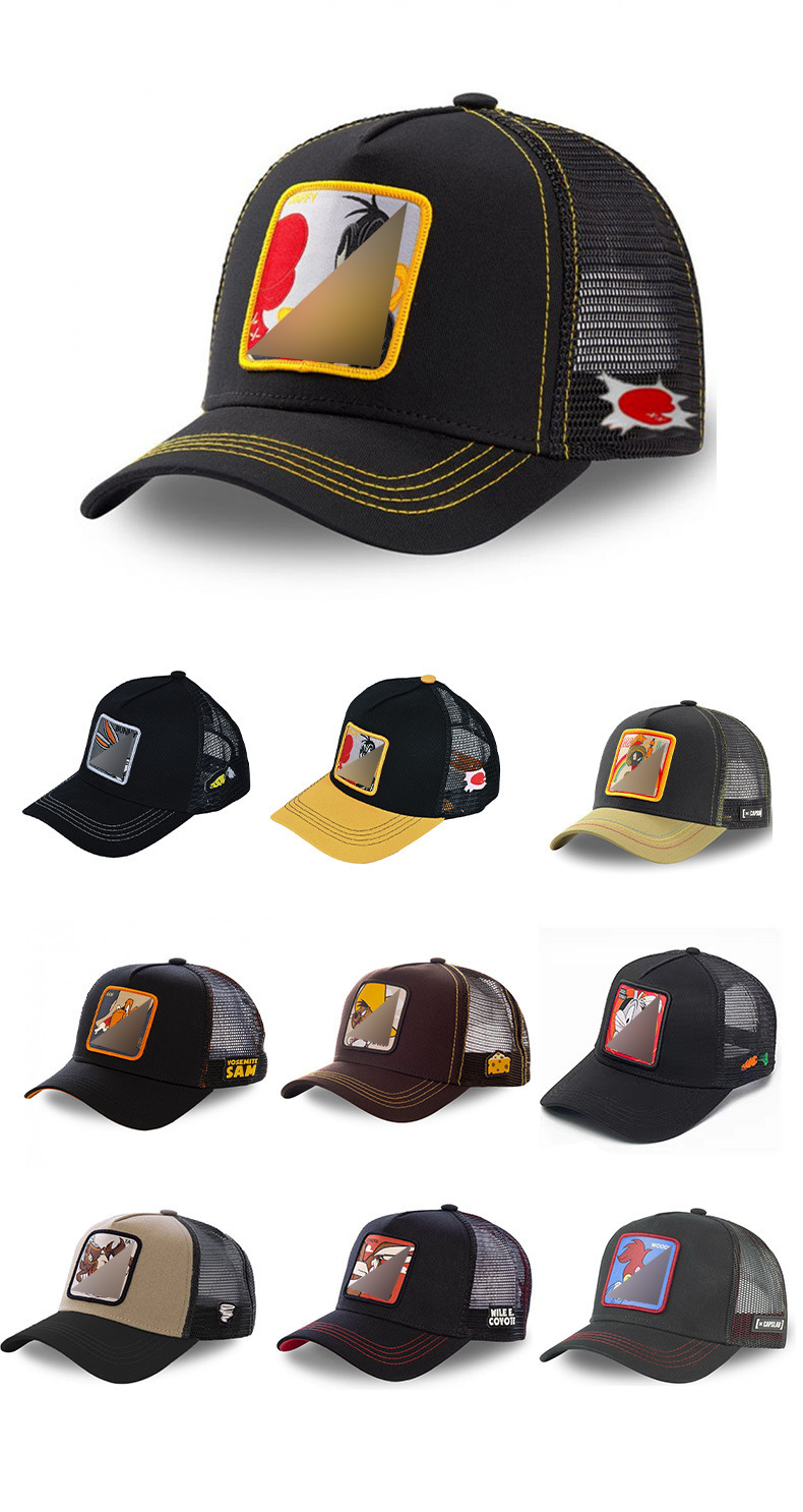 Кепка-тракер с широкими полями, вышивкой в виде мультяшных персонажей (мышь и кролик), дышащая и защищающая от солнца.
