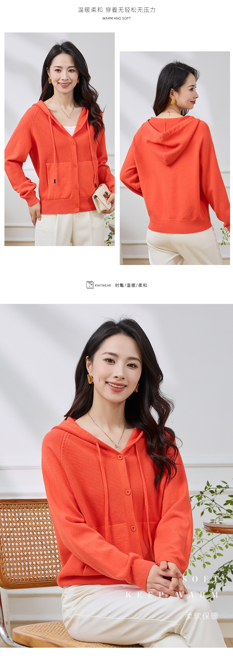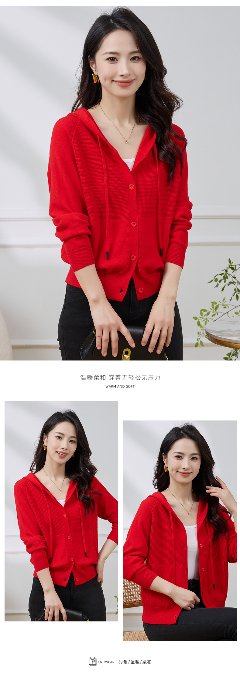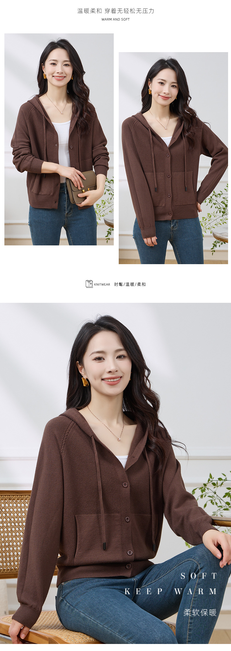 Новый осенне-зимний стильный повседневный короткий кардиган для женщин больших размеров, приятный к телу, теплый, с капюшоном, на завязках, с рукавами реглан.