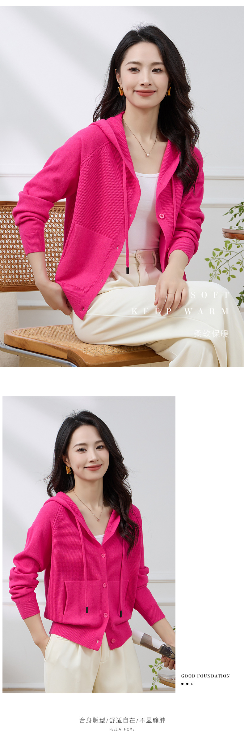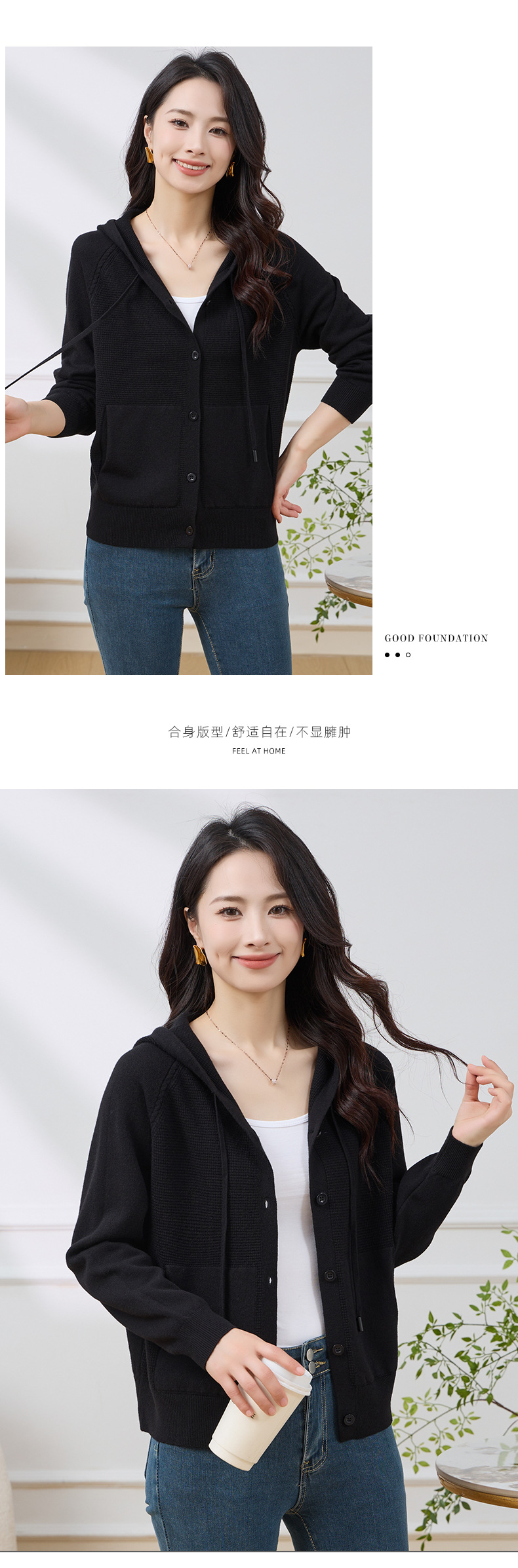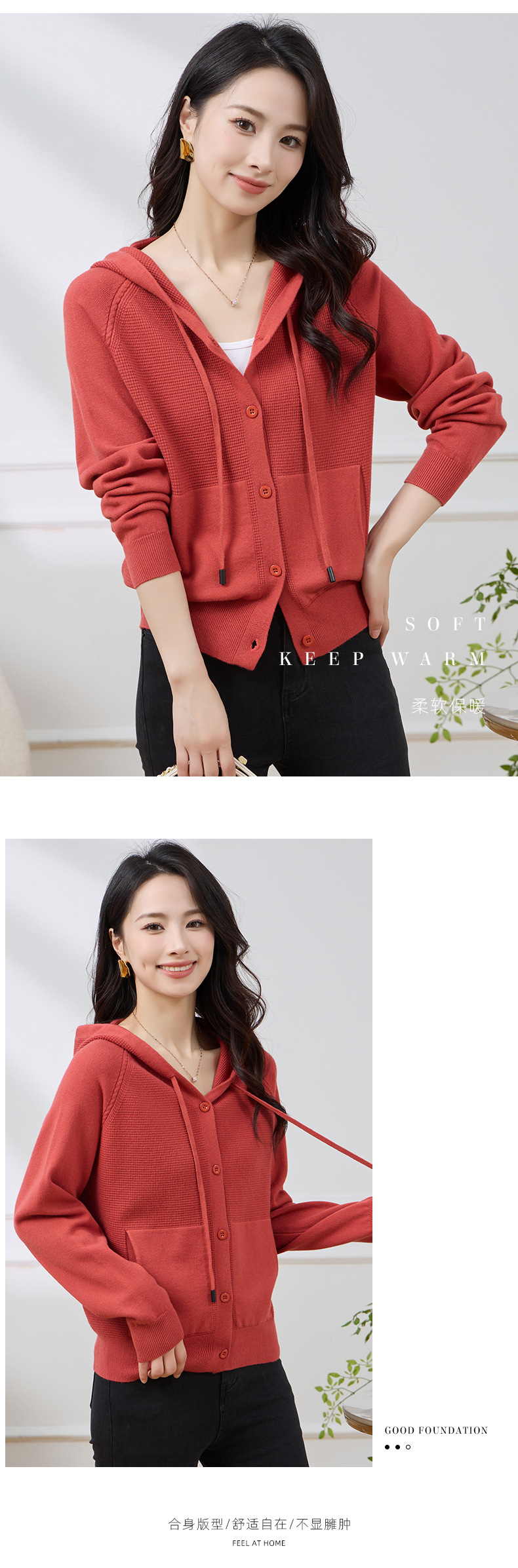 Новый осенне-зимний стильный повседневный короткий кардиган для женщин больших размеров, приятный к телу, теплый, с капюшоном, на завязках, с рукавами реглан.