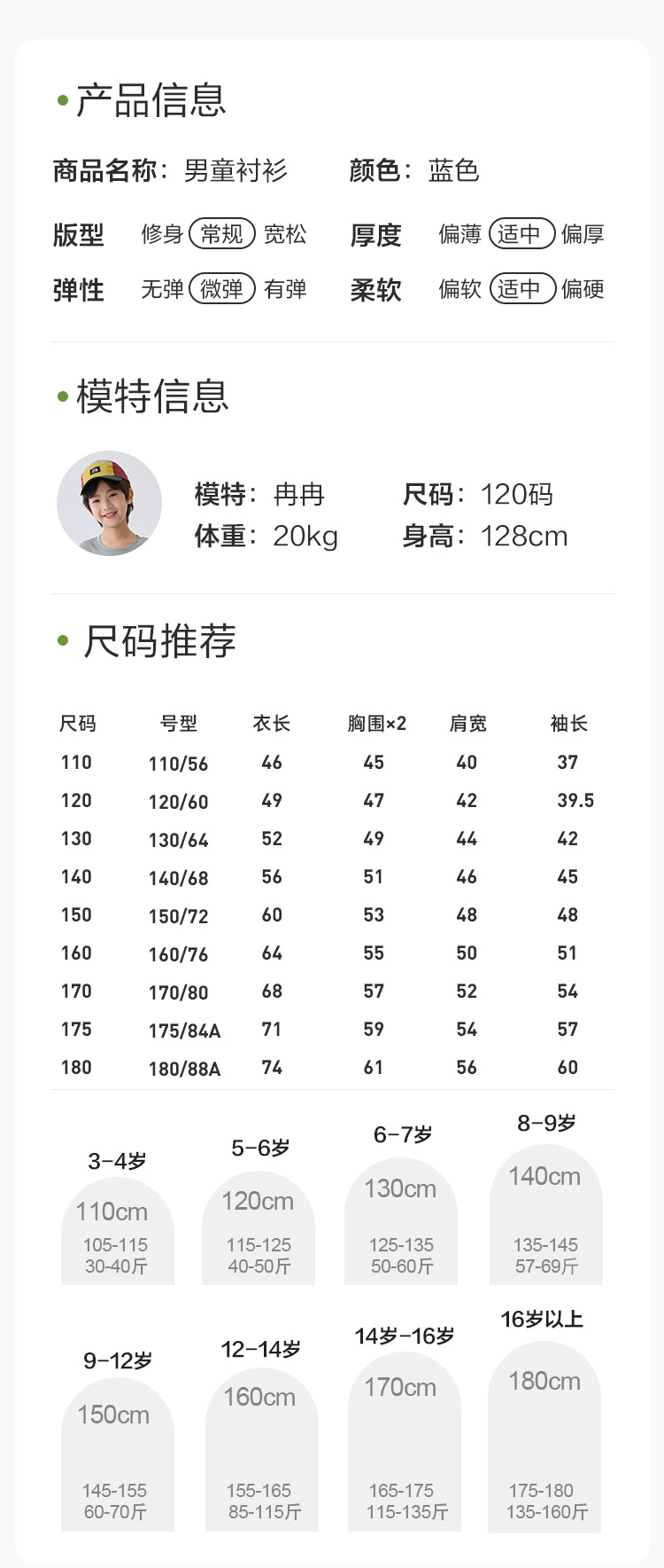 110cm; 120cm; 130cm; 140cm; 150cm; 160cm; 170cm