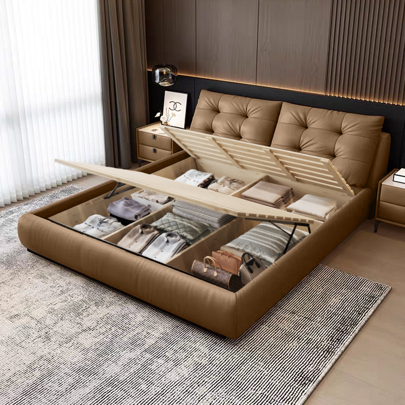 Мокко Зефир из натуральной кожи высокая коробка для хранения кровати Современная минималистичная спальня итальянская светлая роскошная сетка красная мягкая сумка свадебная кровать