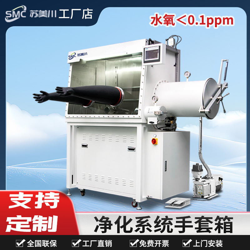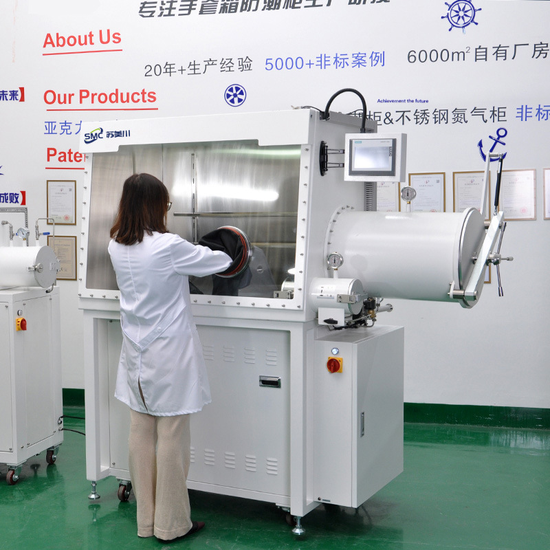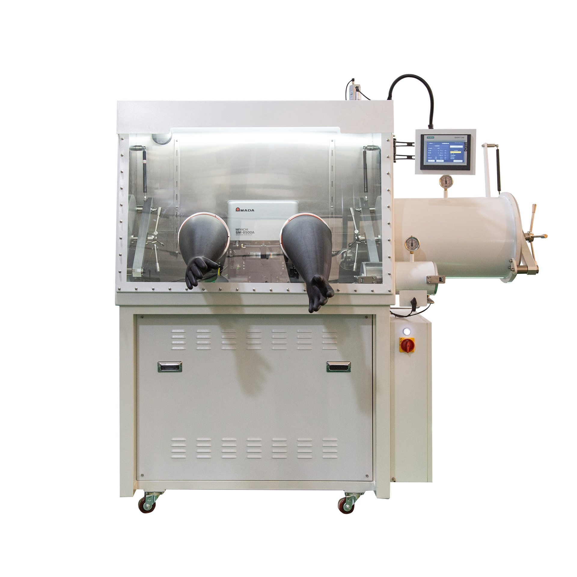 Система очистки воздуха для перчаточных камер: вакуумная перчаточная камера с содержанием воды и кислорода менее 0,1 PPM, автоматическая циркуляция и регенерация воздуха.
