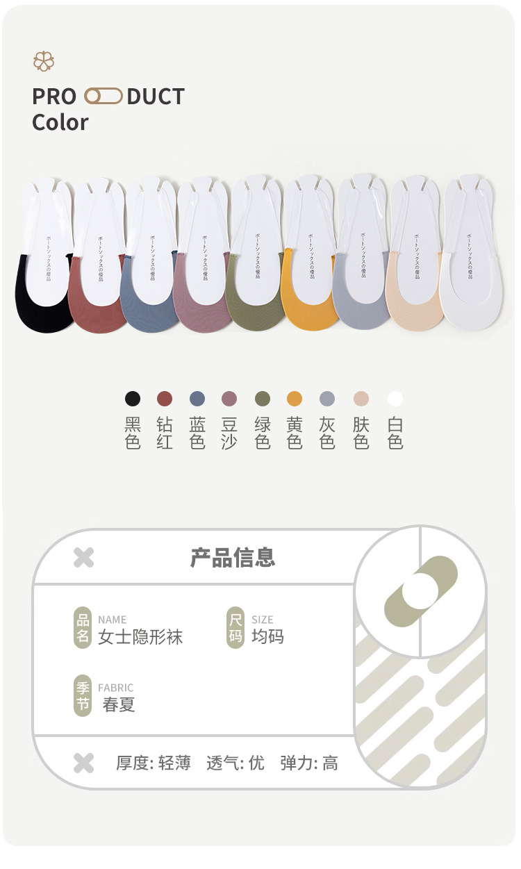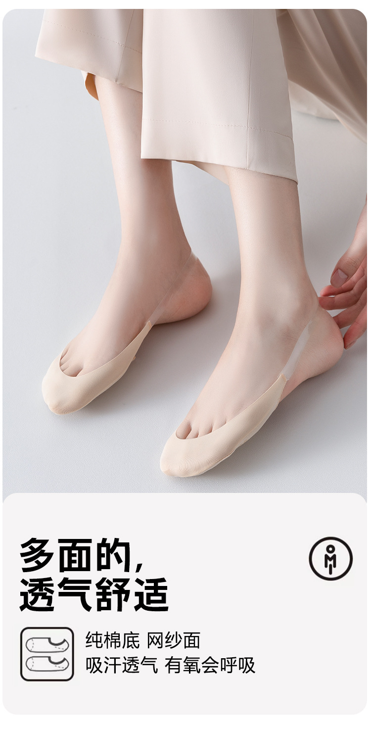 Носки женские летние тонкие невидимки однотонные бескостные носки полупальмовые носки силиконовые нескользящие высокие каблуки неглубокие хлопчатобумажные носки