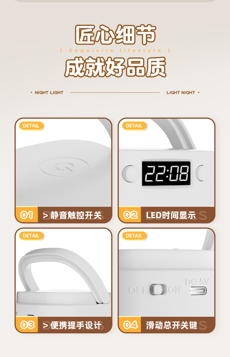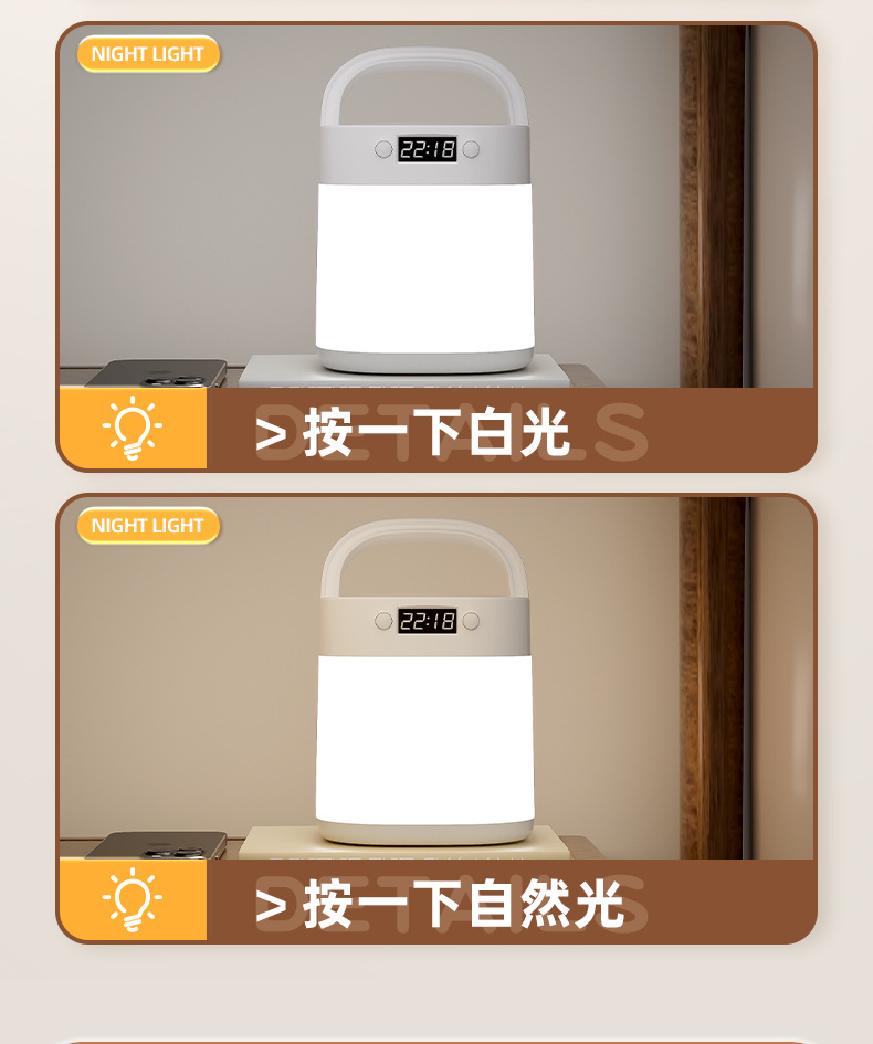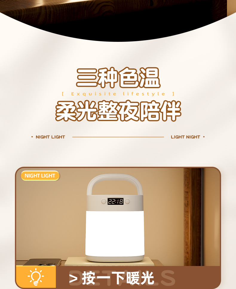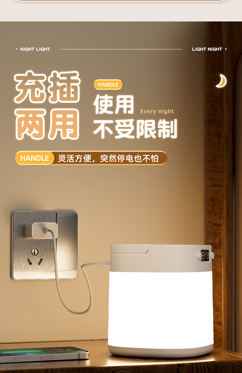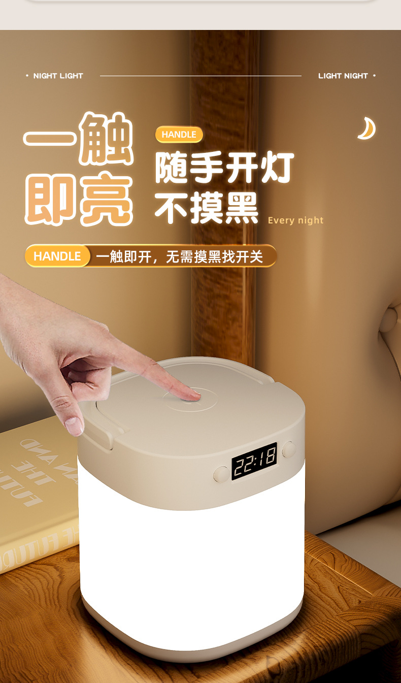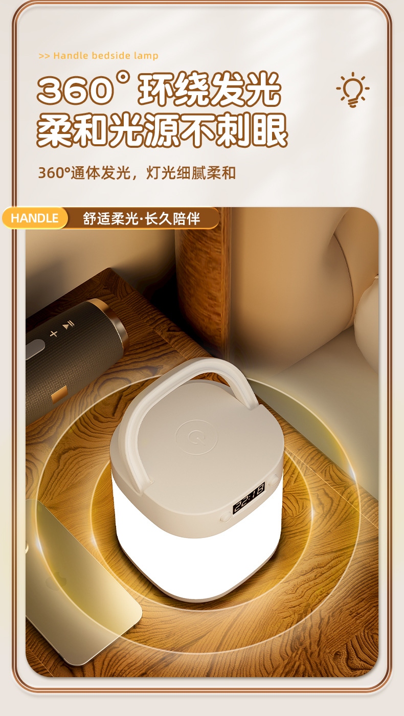 Перезаряжаемый ночник для спальни с часами, пультом дистанционного управления, светодиодная настольная лампа с тремя уровнями цветовой температуры, лампа для защиты глаз