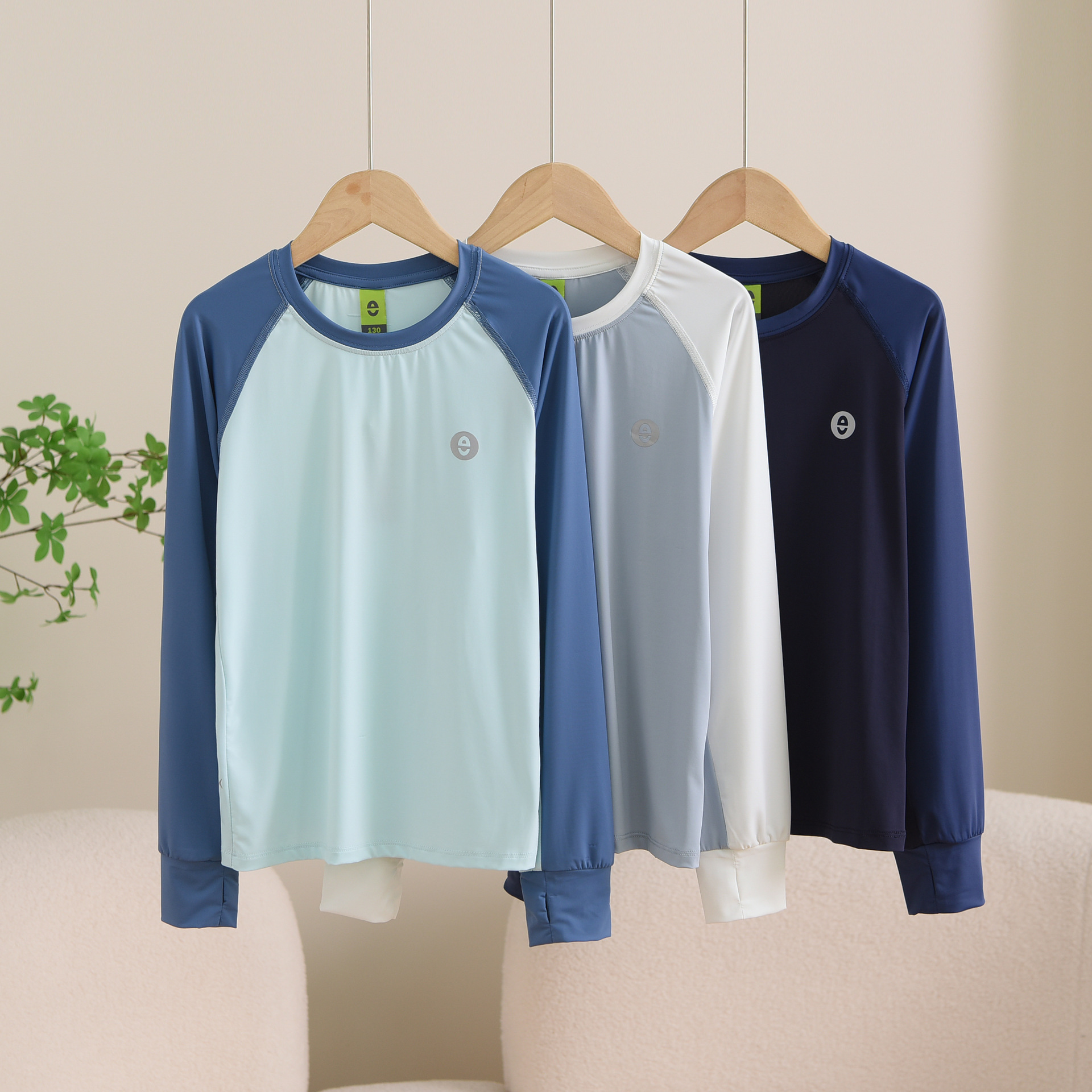 Футболка с длинными рукавами для детей старшего возраста, реглан с цветными блоками, удобный и эластичный верх, быстросохнущая спортивная повседневная одежда для юношеского тенниса.