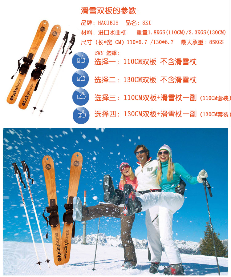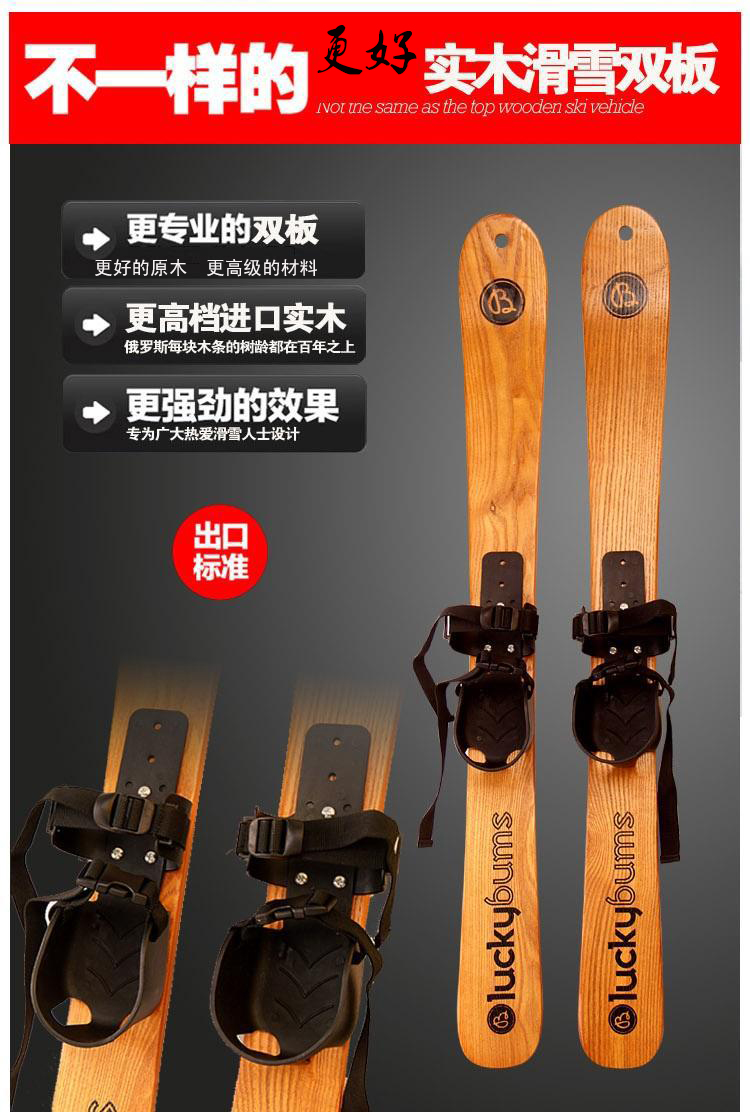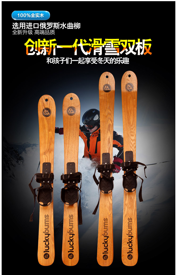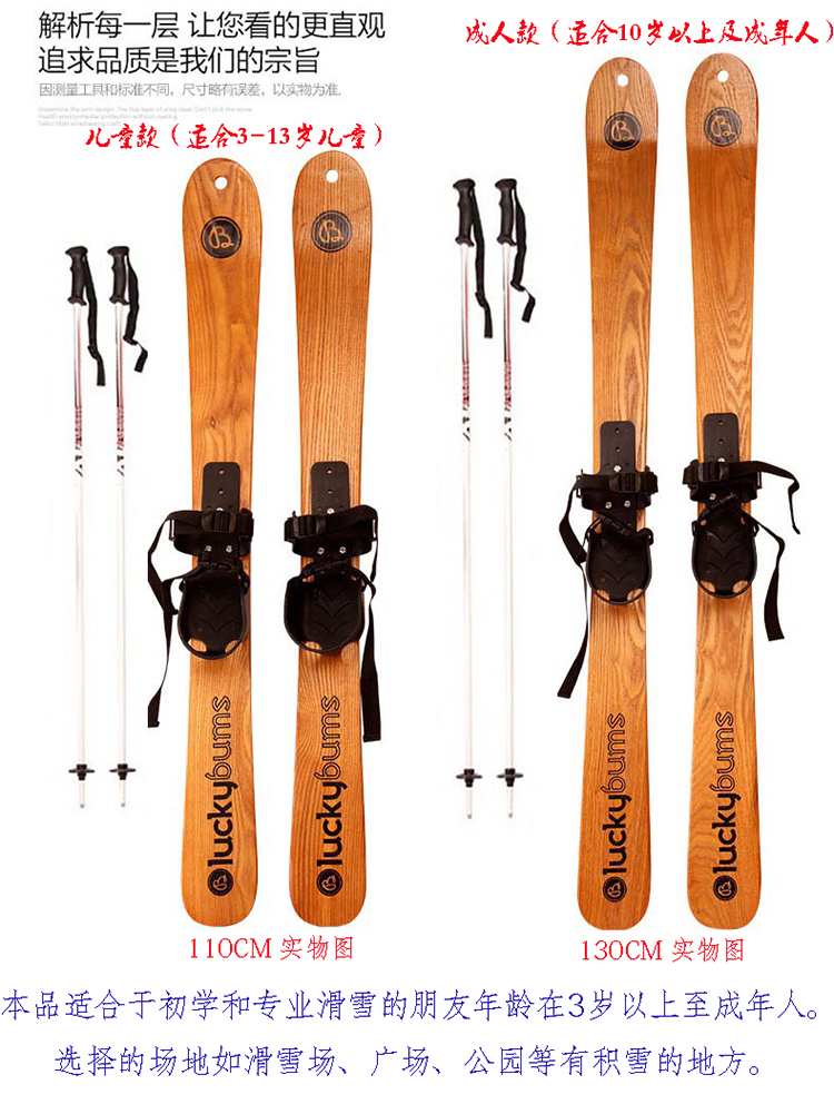 时尚高品质原木水曲柳滑雪双板大人儿童木质滑雪板雪橇可橱窗展示