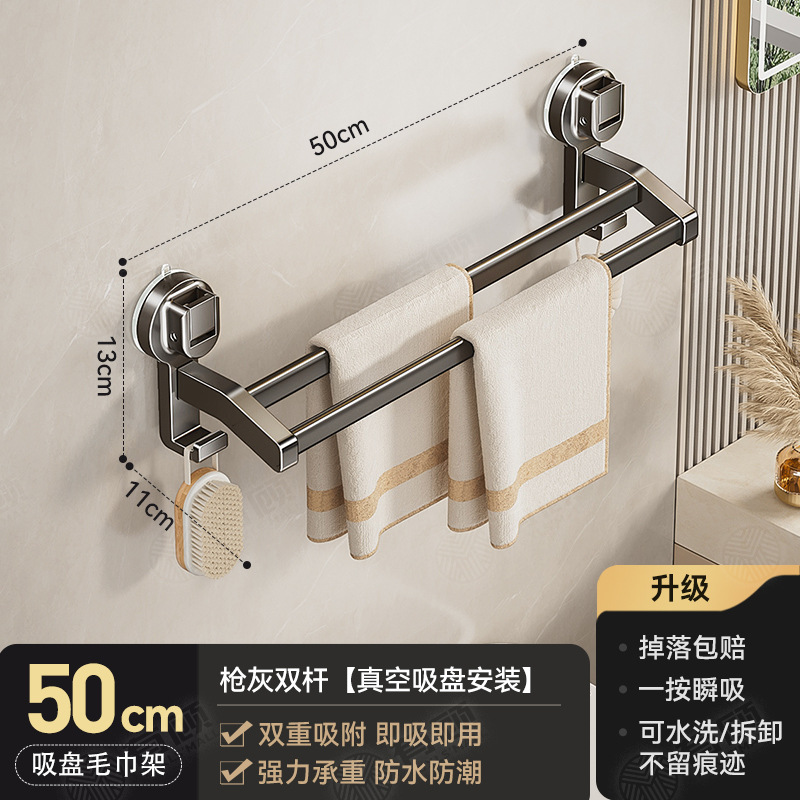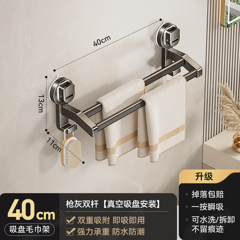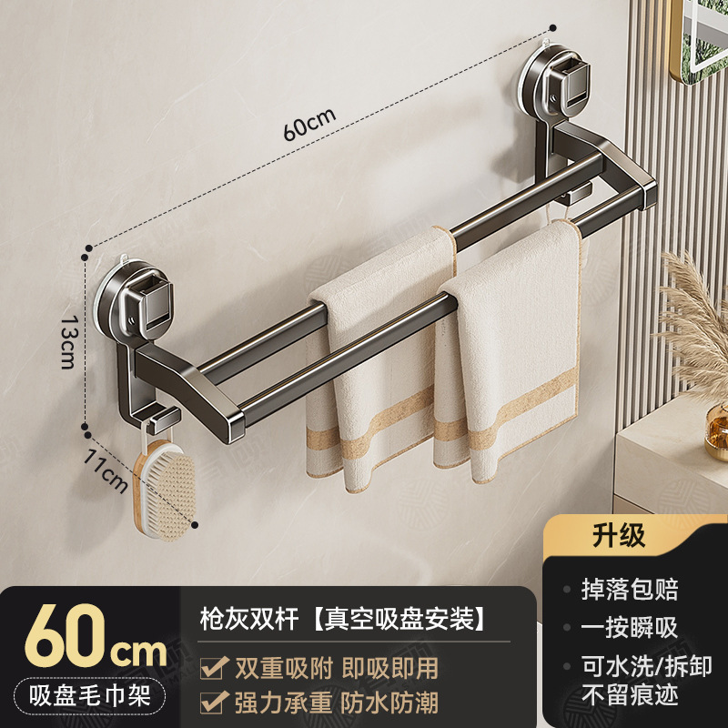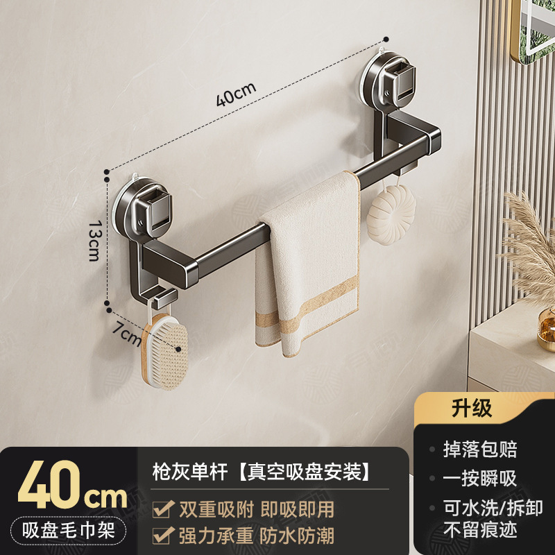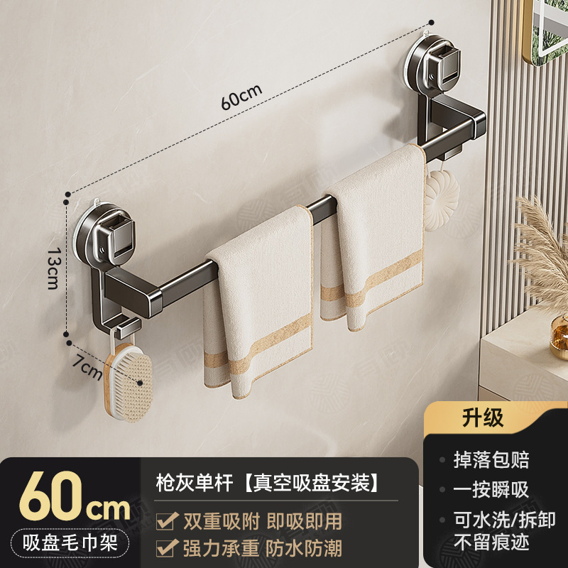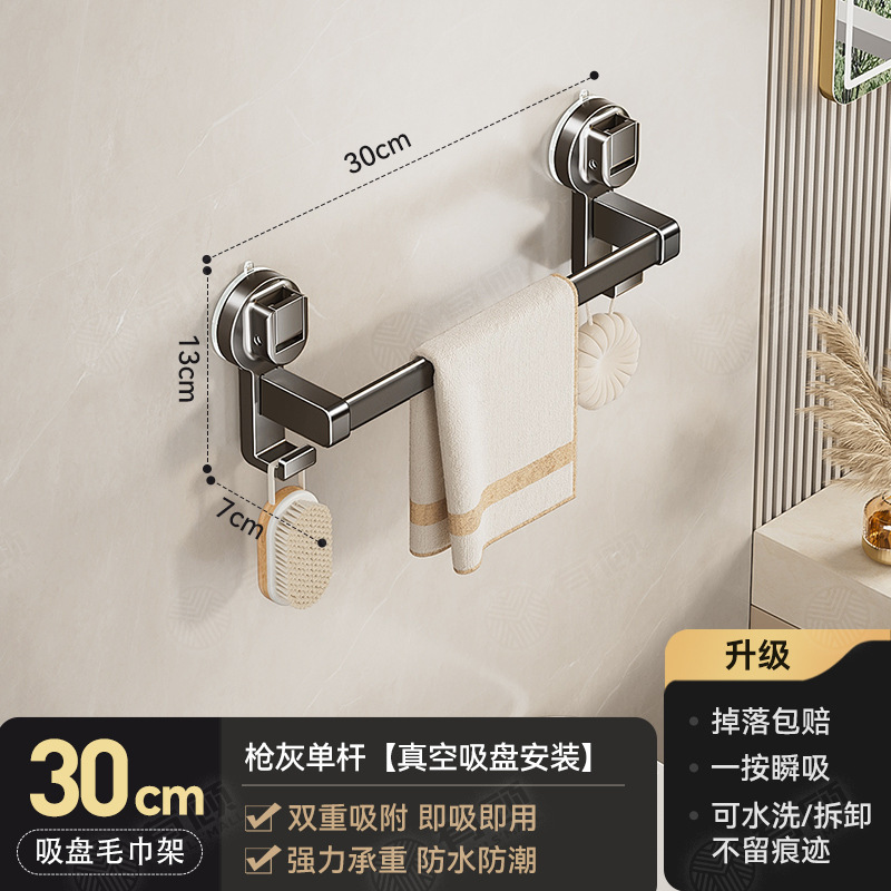 Есть стойка для полотенец с присоской, ванная комната без перфораций, серая ванная комната