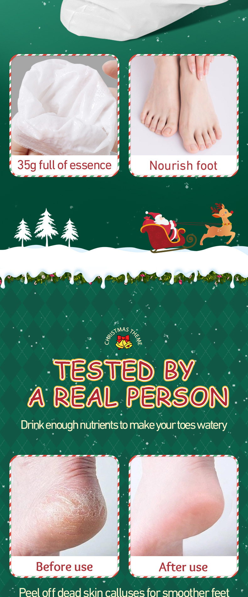 Кросс-граничная рождественская маска для ног с ниацинамидом, питательная, сглаживающая, отшелушивающая и омолаживающая маска для ног, оптовая продажа от производителя для внешней торговли