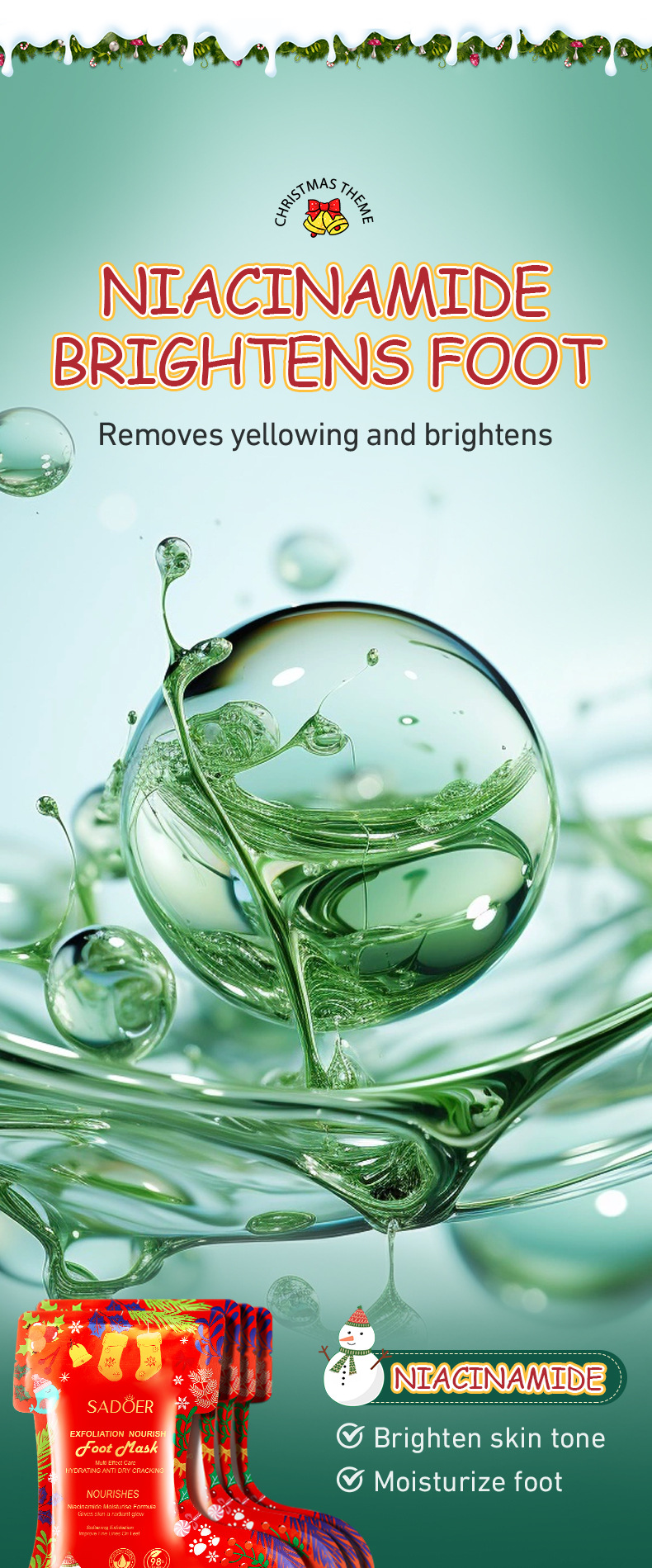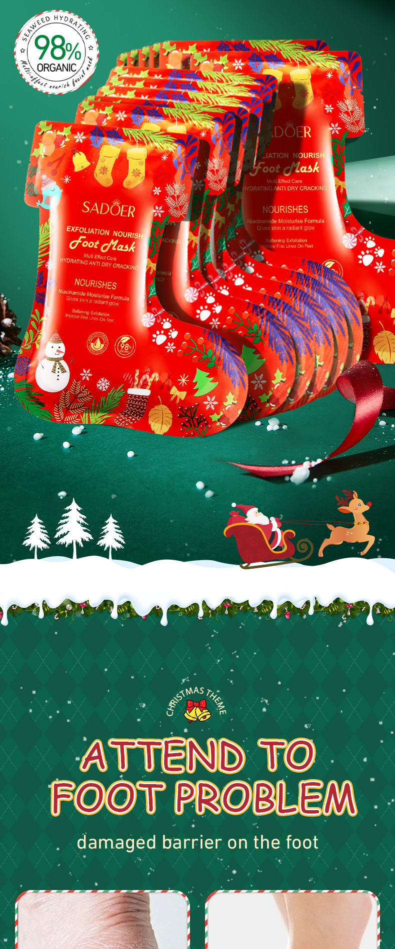 SADOER Рождественская ниацинамидная питательная и гладкая отшелушивающая маска для ног (версия на иностранном языке) 35 г/пар