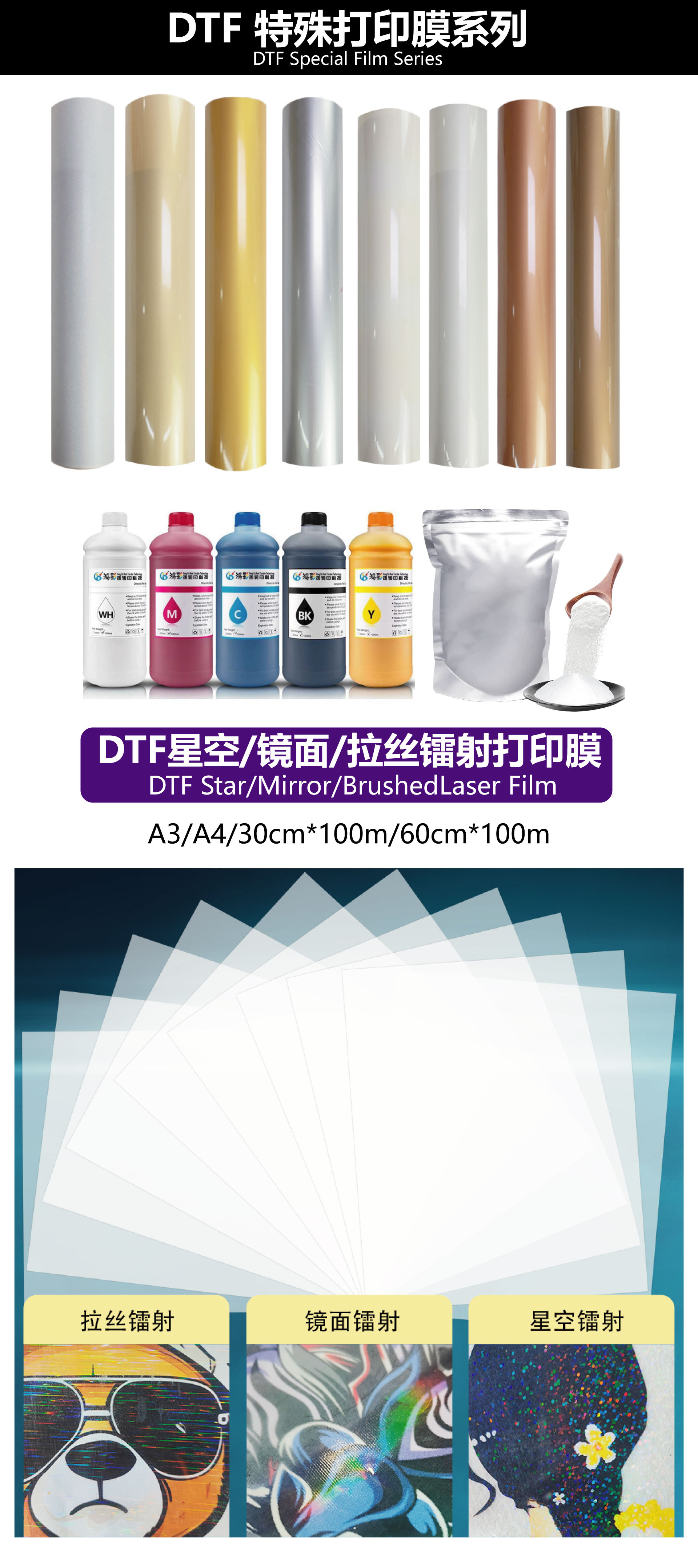 DTF烫画打印膜厂家批发服装烫印膜好撕冷撕热撕膜PET亮面秒撕烫画膜热转印膜30CM/60CM烫画打印膜