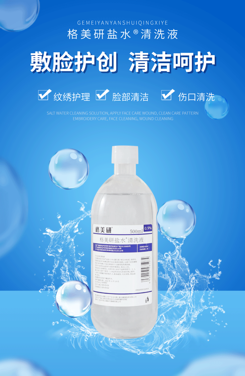 Хлорид натрия Физиологическая вода морской соли очищающая жидкость для лица, вышивка лица, очищение раны, дезинфекция и нос с 500 мл