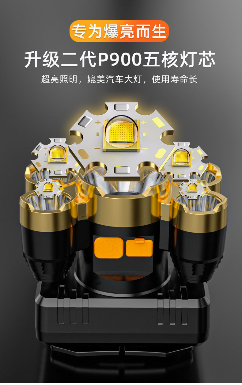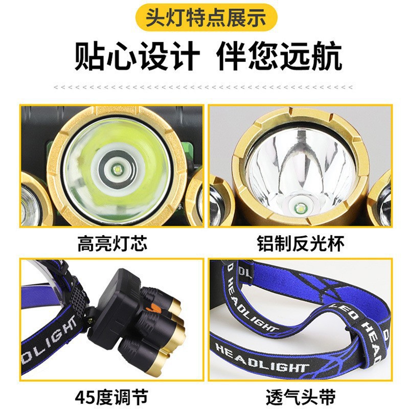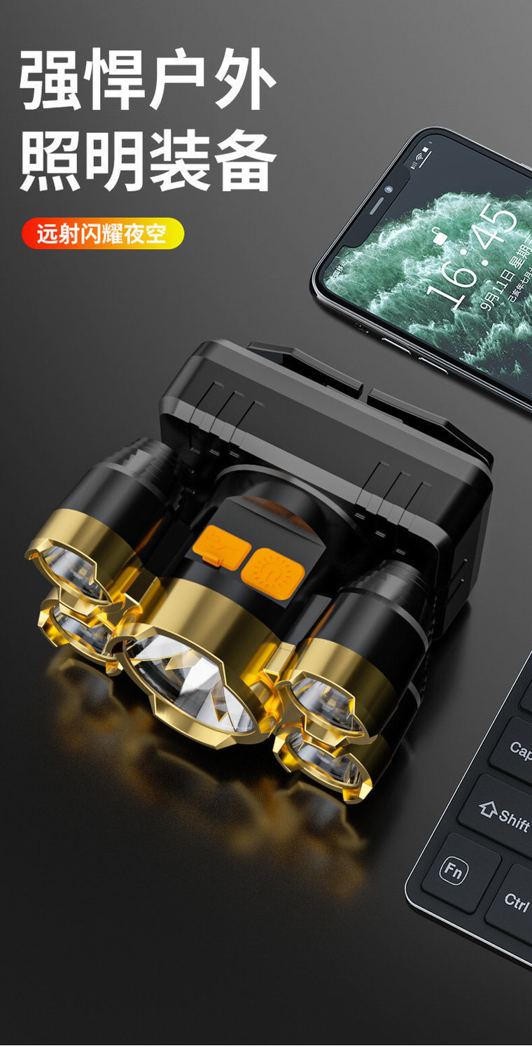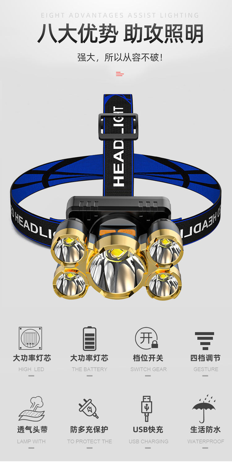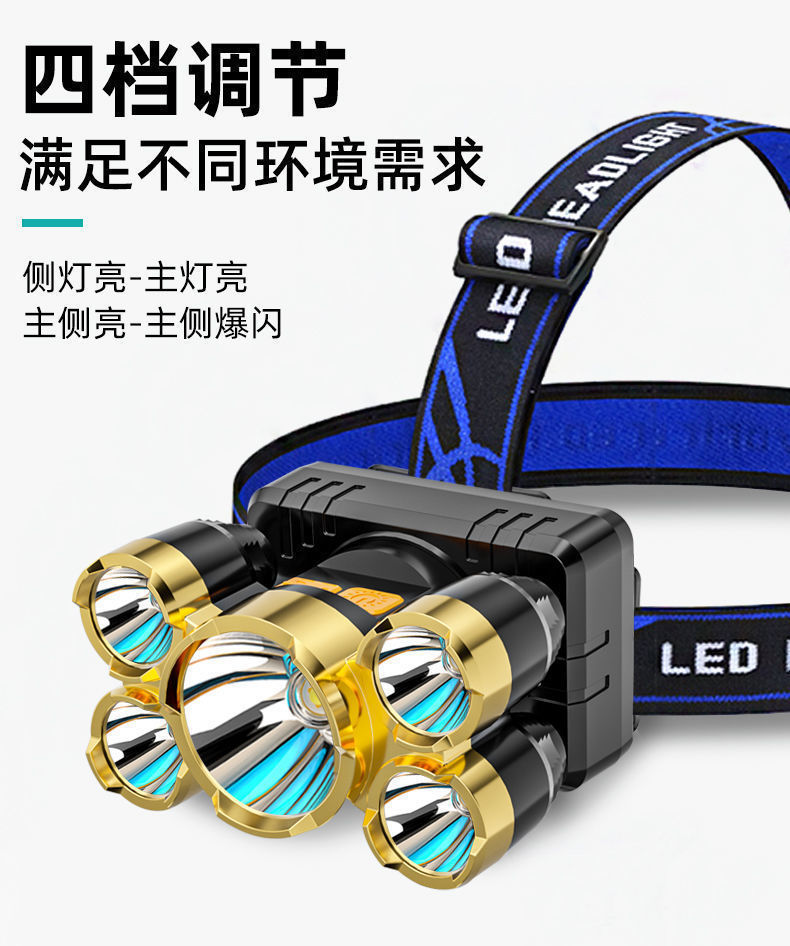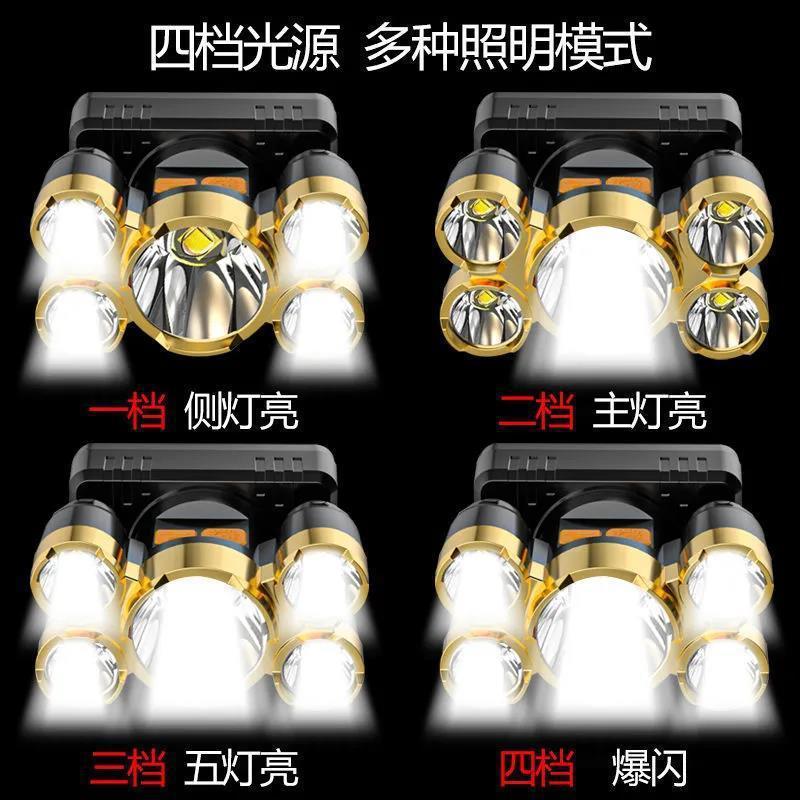 Пятиголовый фонарь сверхдлинное время автономной работы, светодиодный сильный свет, сверхяркий перезаряжаемый дальномерный фонарик для наружной рыбалки