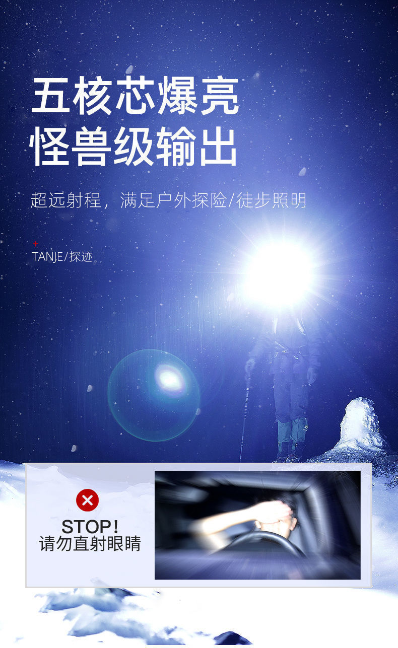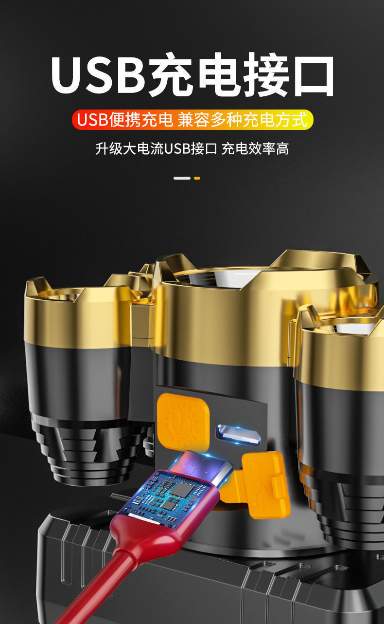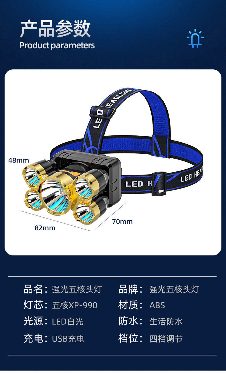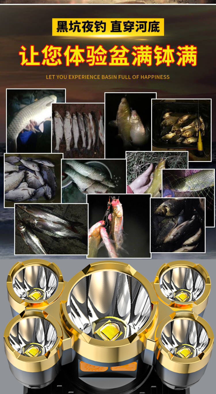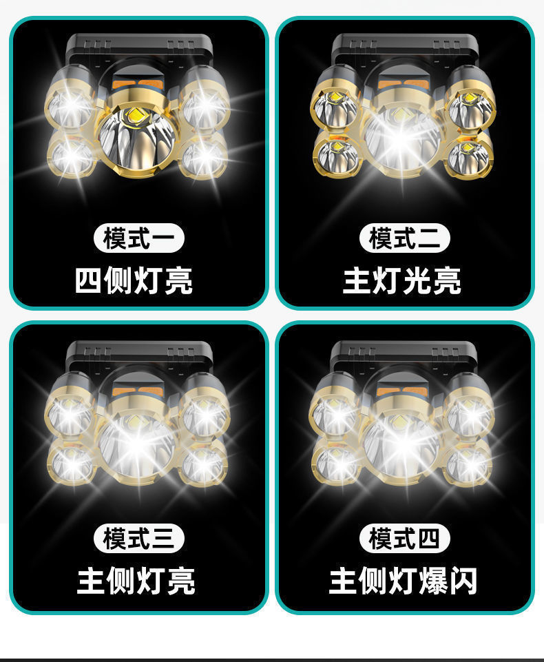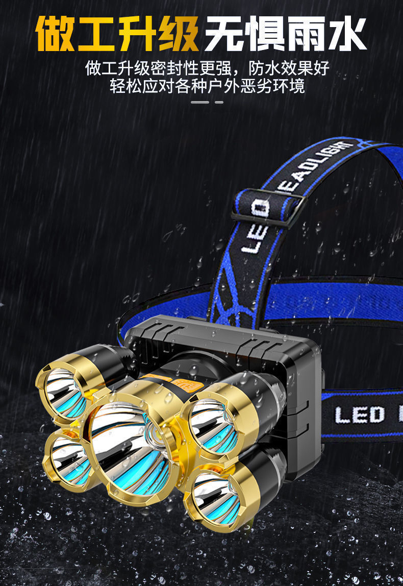 Пятиголовый фонарь сверхдлинное время автономной работы, светодиодный сильный свет, сверхяркий перезаряжаемый дальномерный фонарик для наружной рыбалки