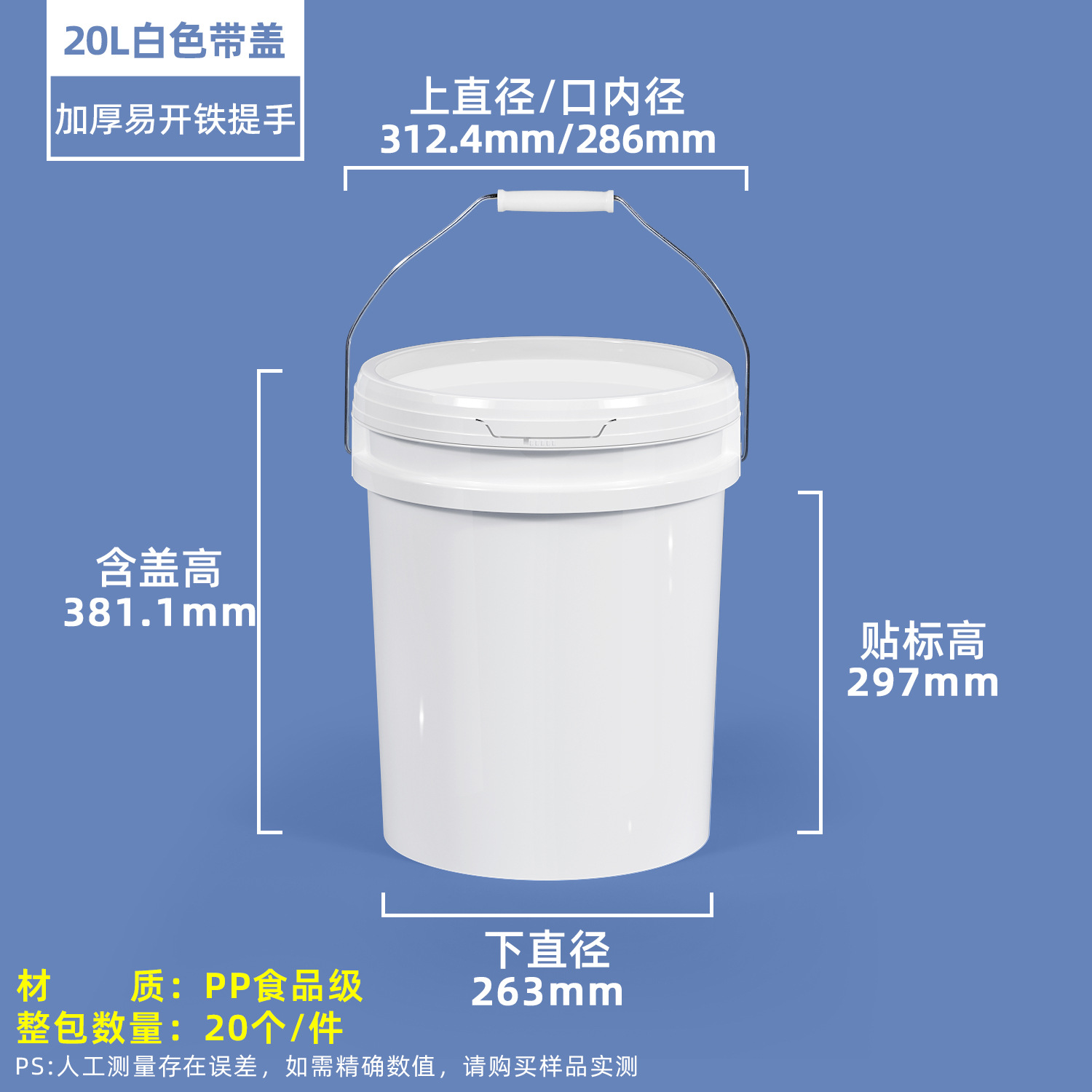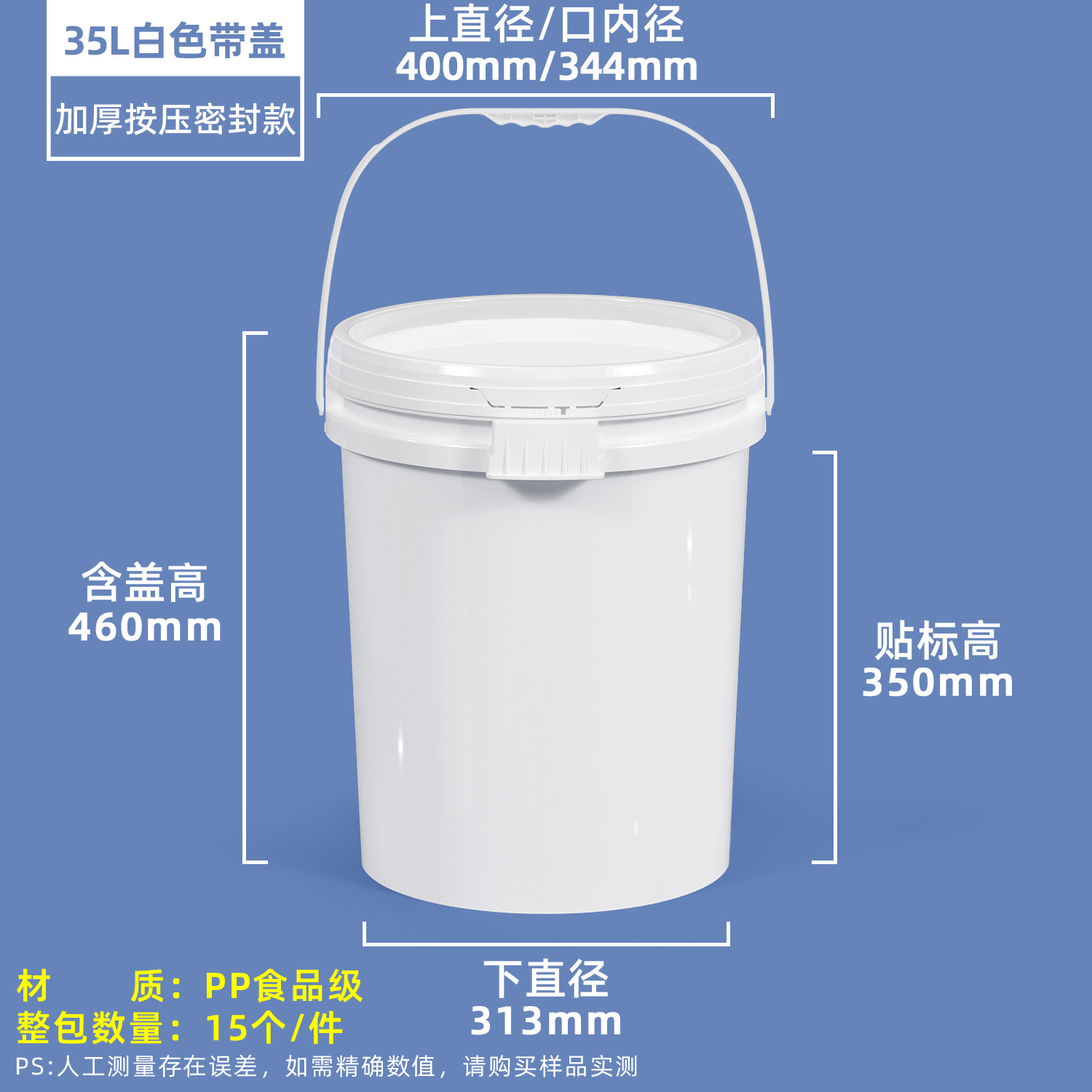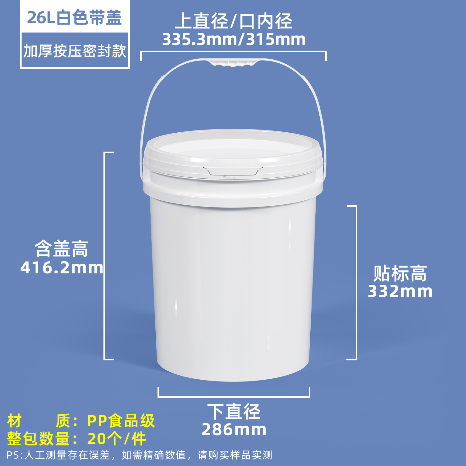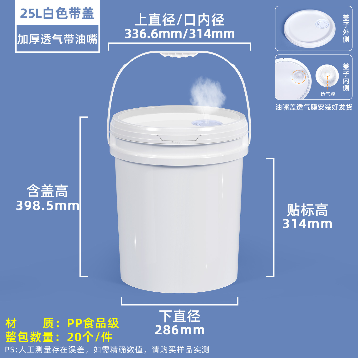Пластиковый ведро 25 л с крышкой, утолщенное ведро 3 л из полипропилена для пищевых продуктов, меда, краски, химикатов, герметика, большое круглое ведро 50 л белого цвета