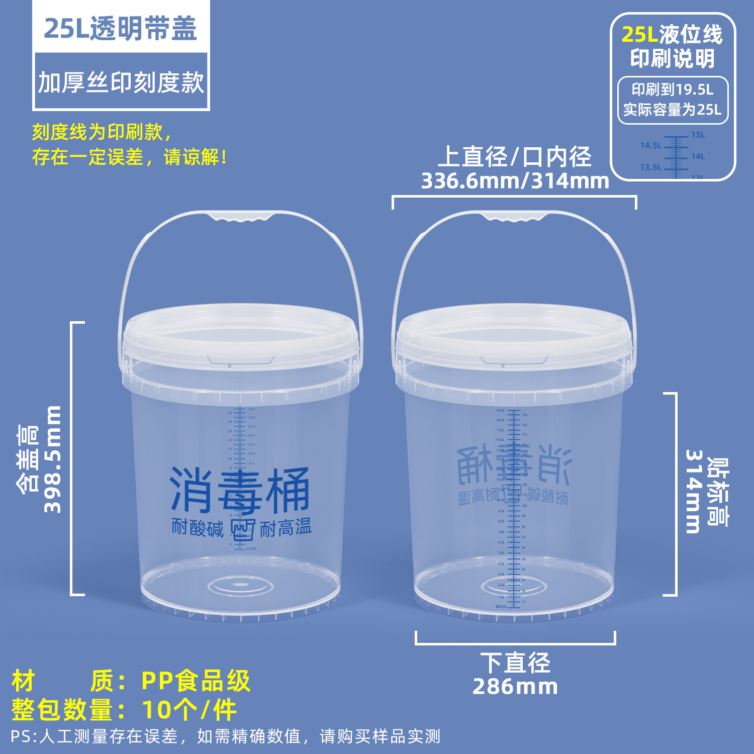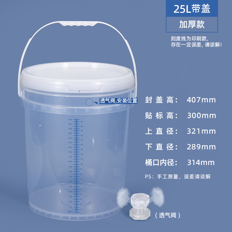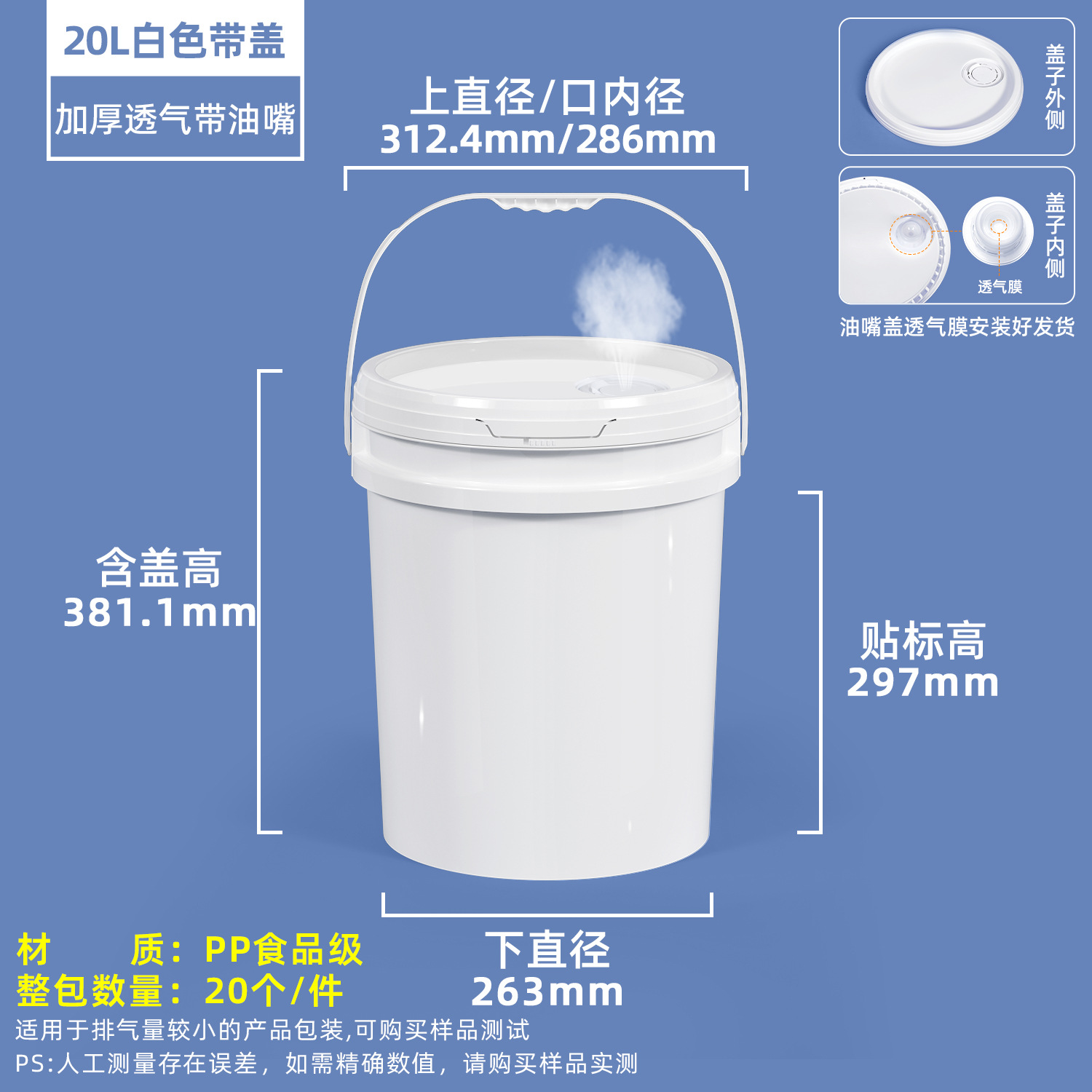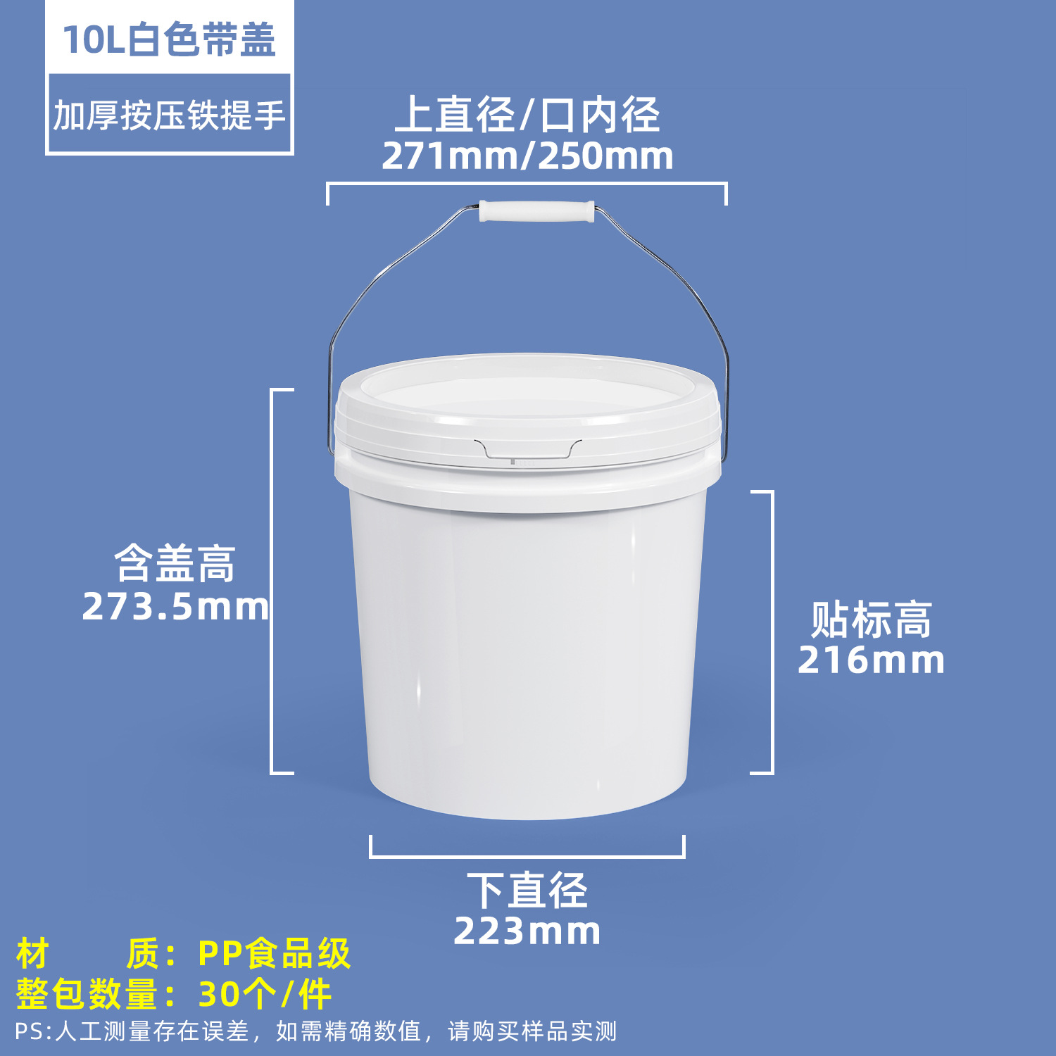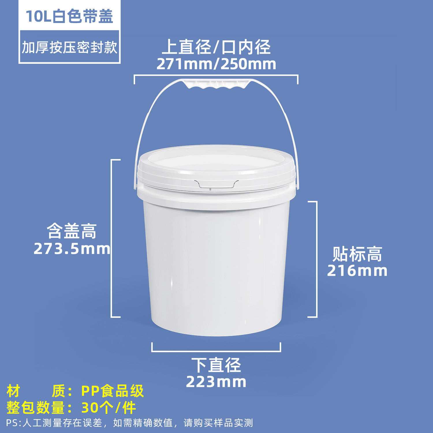 Пластиковый ведро 25 л с крышкой, утолщенное ведро 3 л из полипропилена для пищевых продуктов, меда, краски, химикатов, герметика, большое круглое ведро 50 л белого цвета