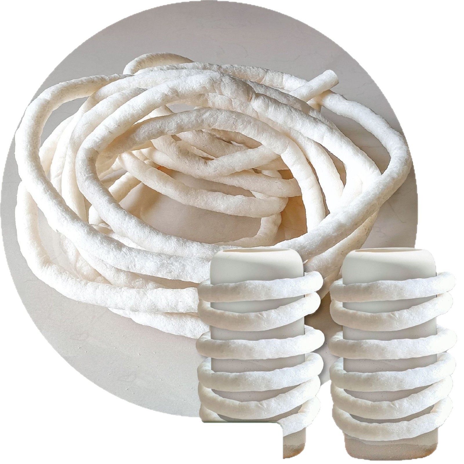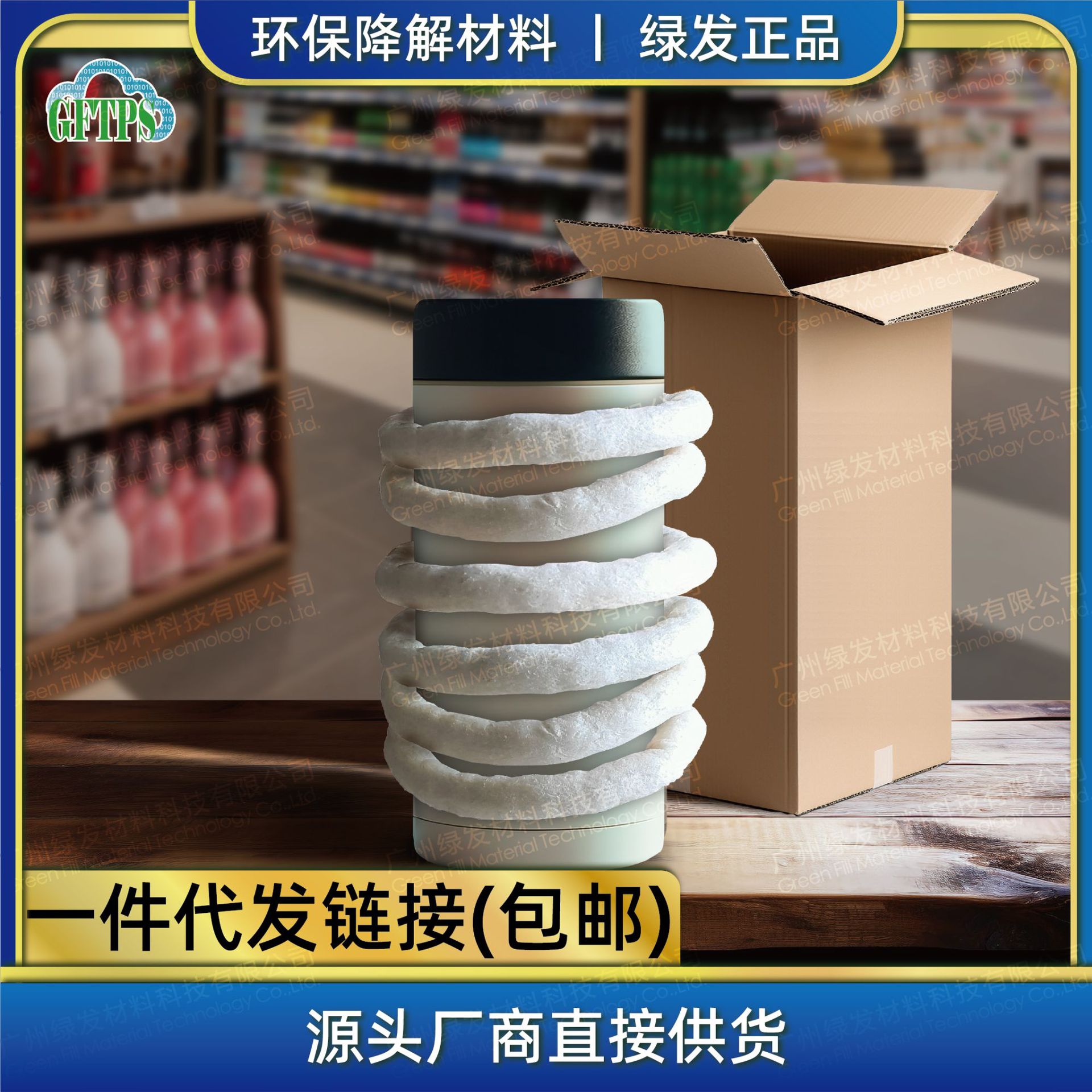 Полностью биоразлагаемые пенопластовые полоски можно обернуть вокруг амортизирующего хлопка, формованных изделий и наполнить пенопластовыми колоннами из крахмала для поглощения ударов.