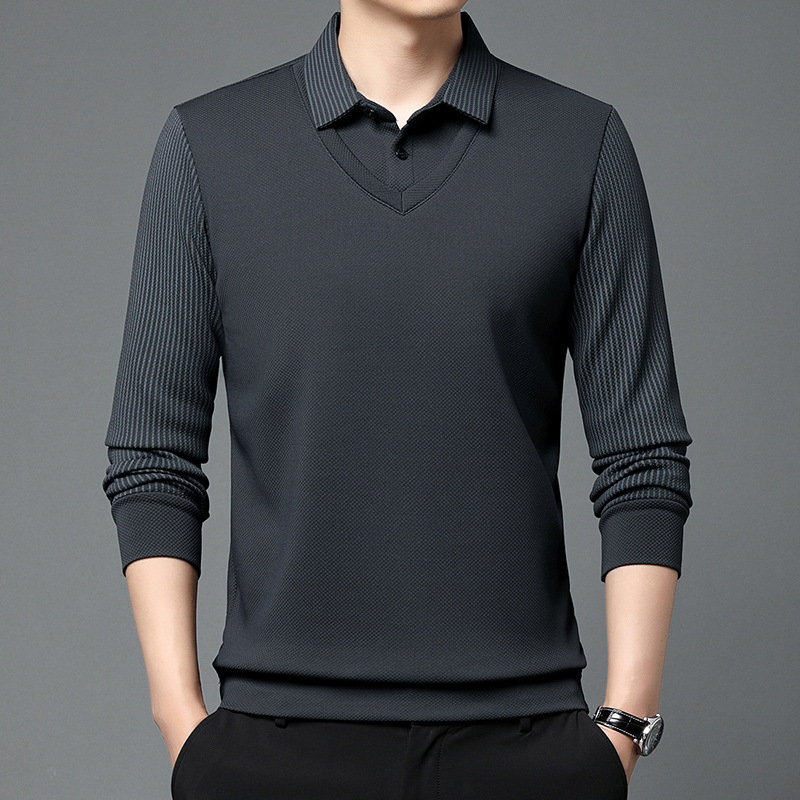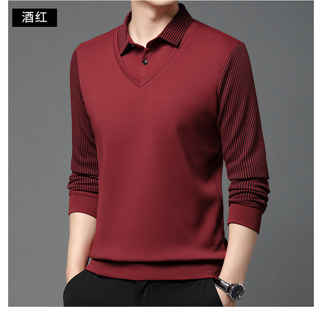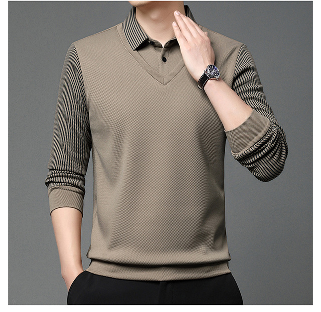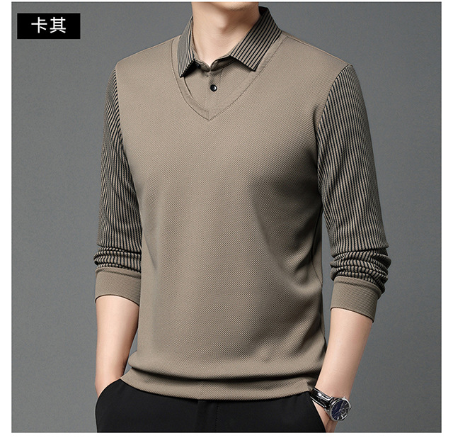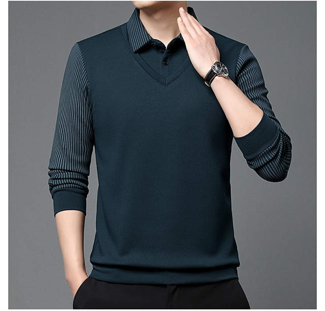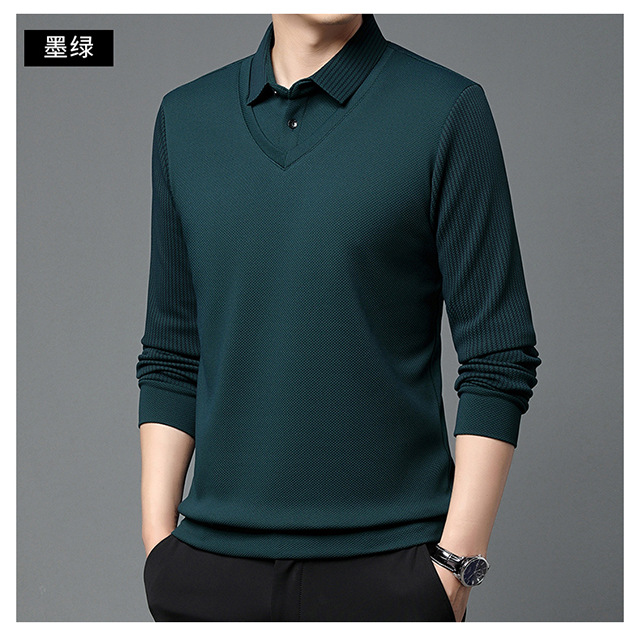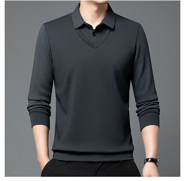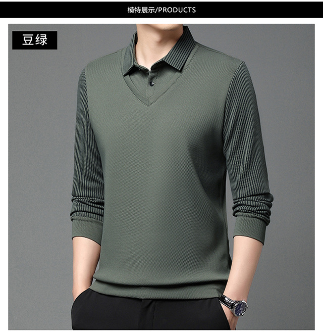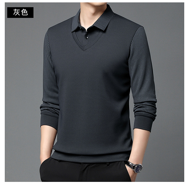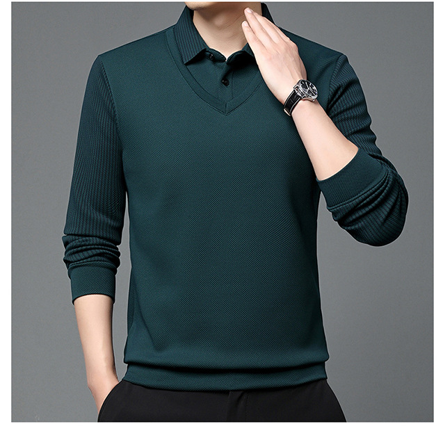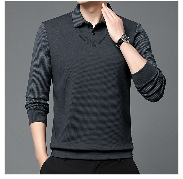 Мужская поддельная рубашка поло с двумя рукавами с длинными рукавами, футболка, упругая, старшая весна и осень свободная, без горячих лацканов, дикая повседневная