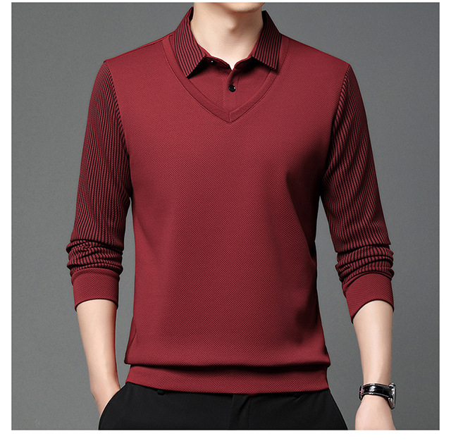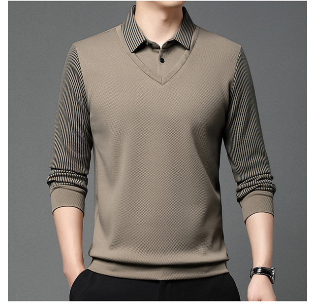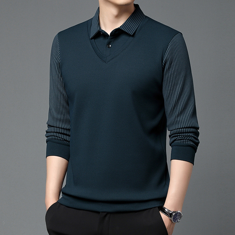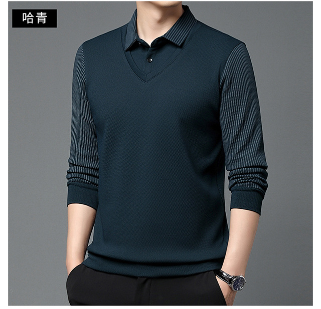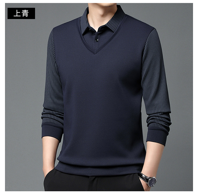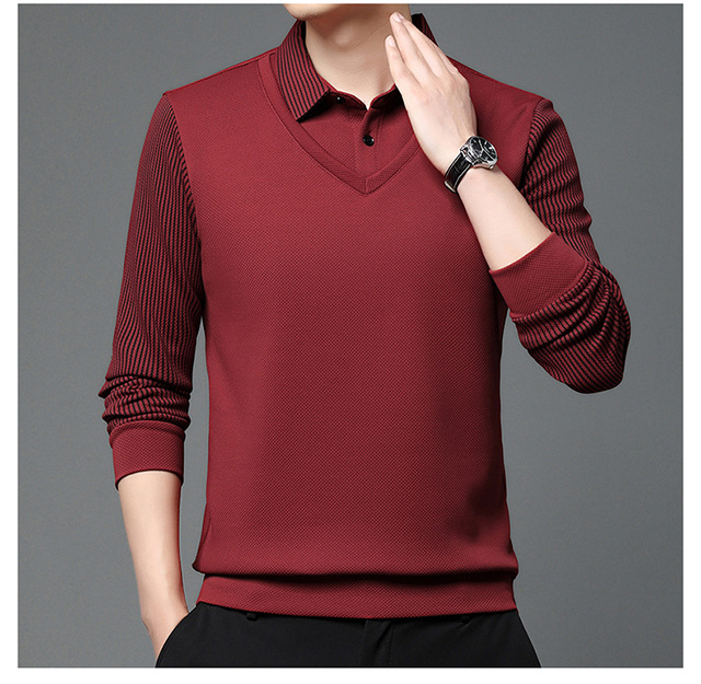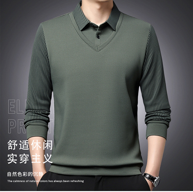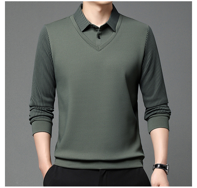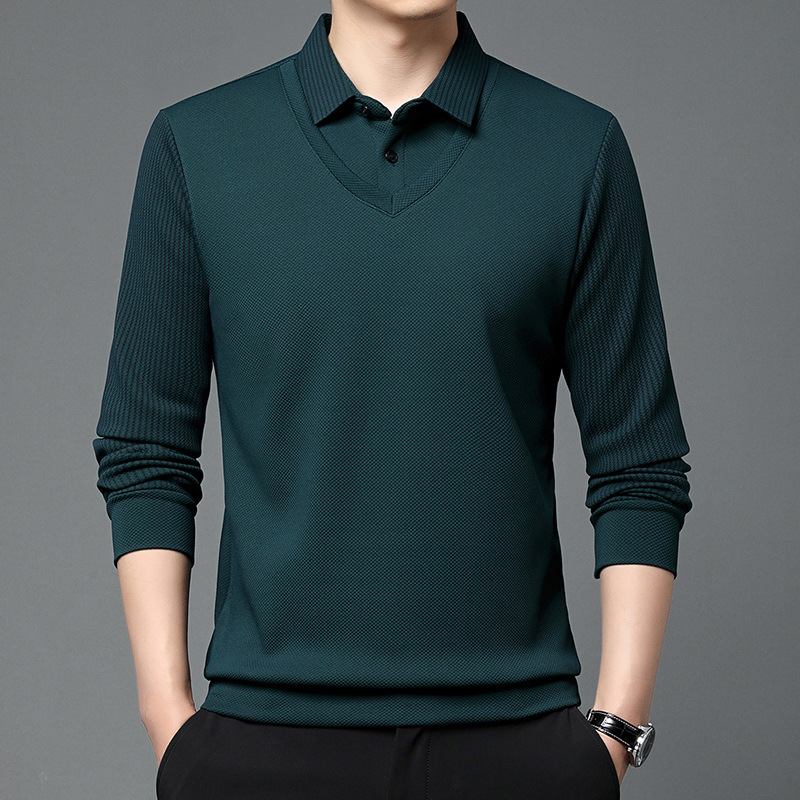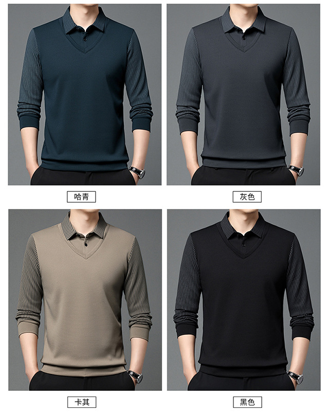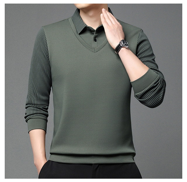 Мужская поддельная рубашка поло с двумя рукавами с длинными рукавами, футболка, упругая, старшая весна и осень свободная, без горячих лацканов, дикая повседневная