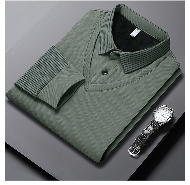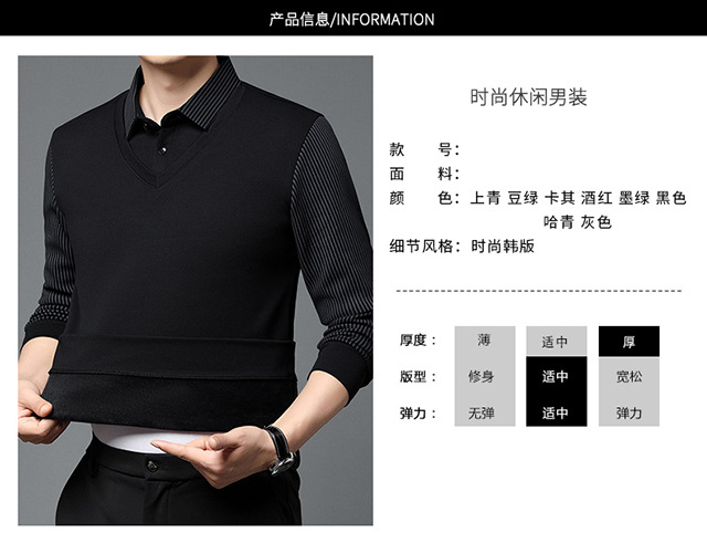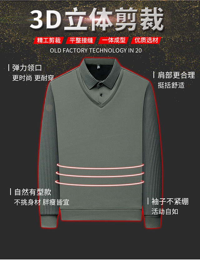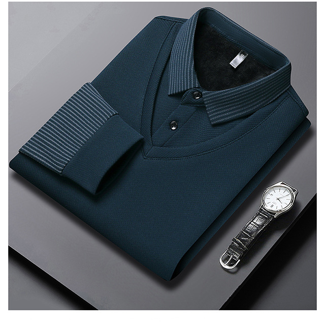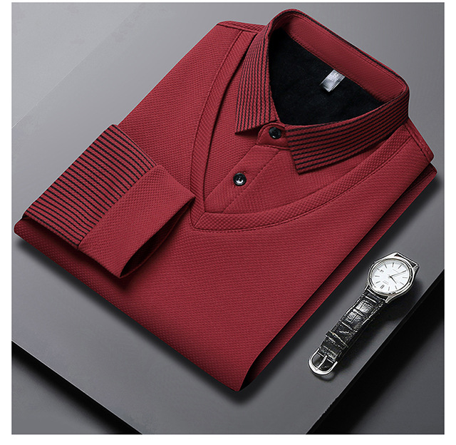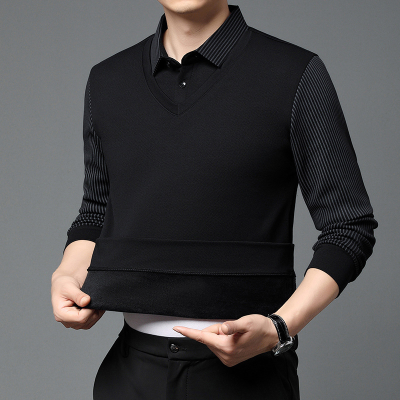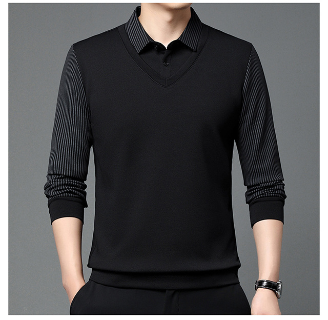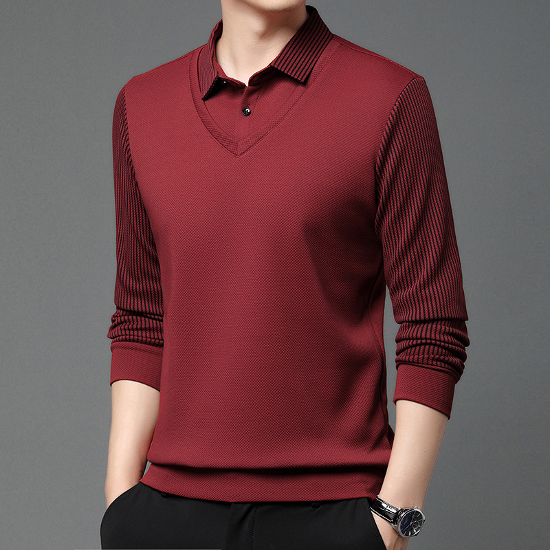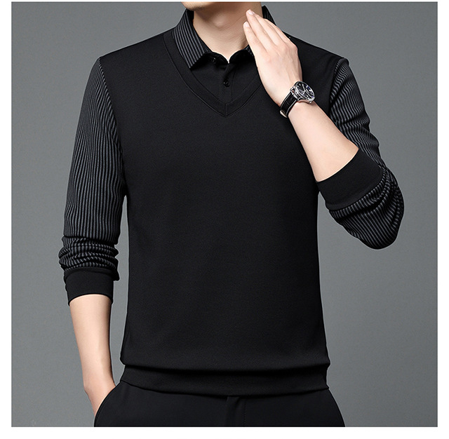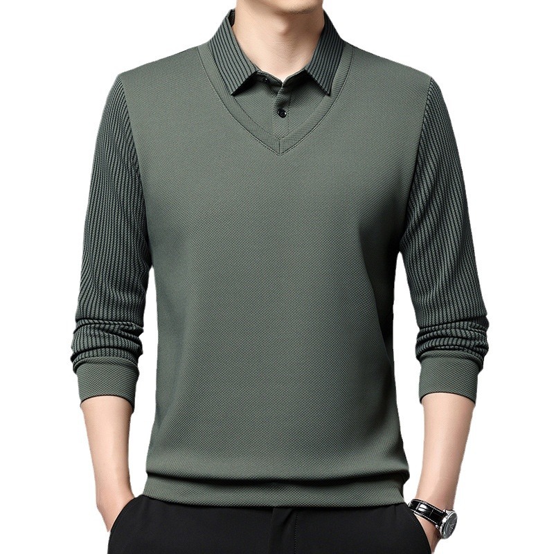 Мужская поддельная рубашка поло с двумя рукавами с длинными рукавами, футболка, упругая, старшая весна и осень свободная, без горячих лацканов, дикая повседневная
