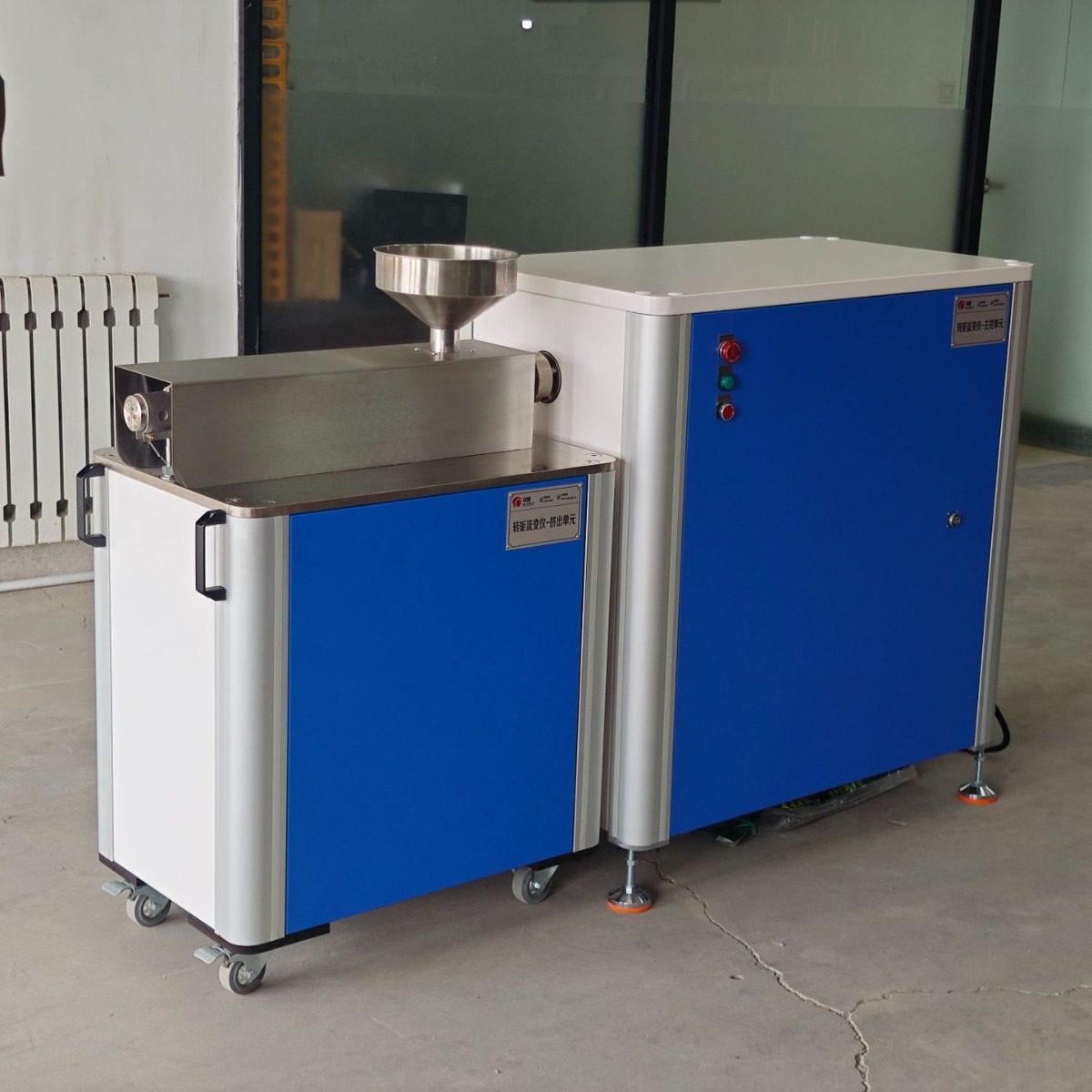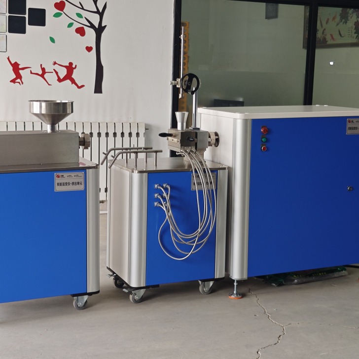 本设备配有不同参数的螺杆,在具有一定温度的圆筒内旋转,筒的另端设有送料斗。当原料被送至筒的2/3处时逐步增塑,进入到筒的剩余部分内被均化,当所有颗粒全部溶化后即可利用毛细管挤出模具成为母料或注入模具成形,同时设备也完成对材料的表现粘度与剪切速度及剪切应力关系的测量。