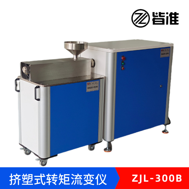 ZJL-300B挤塑式转矩流变仪主要由进口伺服电机、减速器、挤出螺杆、口模、测控模块、温度模块、压力传感器、电子计算机及测控软件组成。其原理是经由螺杆的旋转,带动物料经由口模挤出,在这个过程中测量材料的剪切速率和剪切压力,计算物料在规定温度下的粘度。同时,挤出式毛细管流变仪也可以做为生产工艺测验的仪器,通过更换不同类型的口模,以少量物料进行实际的生产加工,在这个过程中通过控制挤出速度、熔体温度、配方比例等多种手段,对生产工艺进行验证。