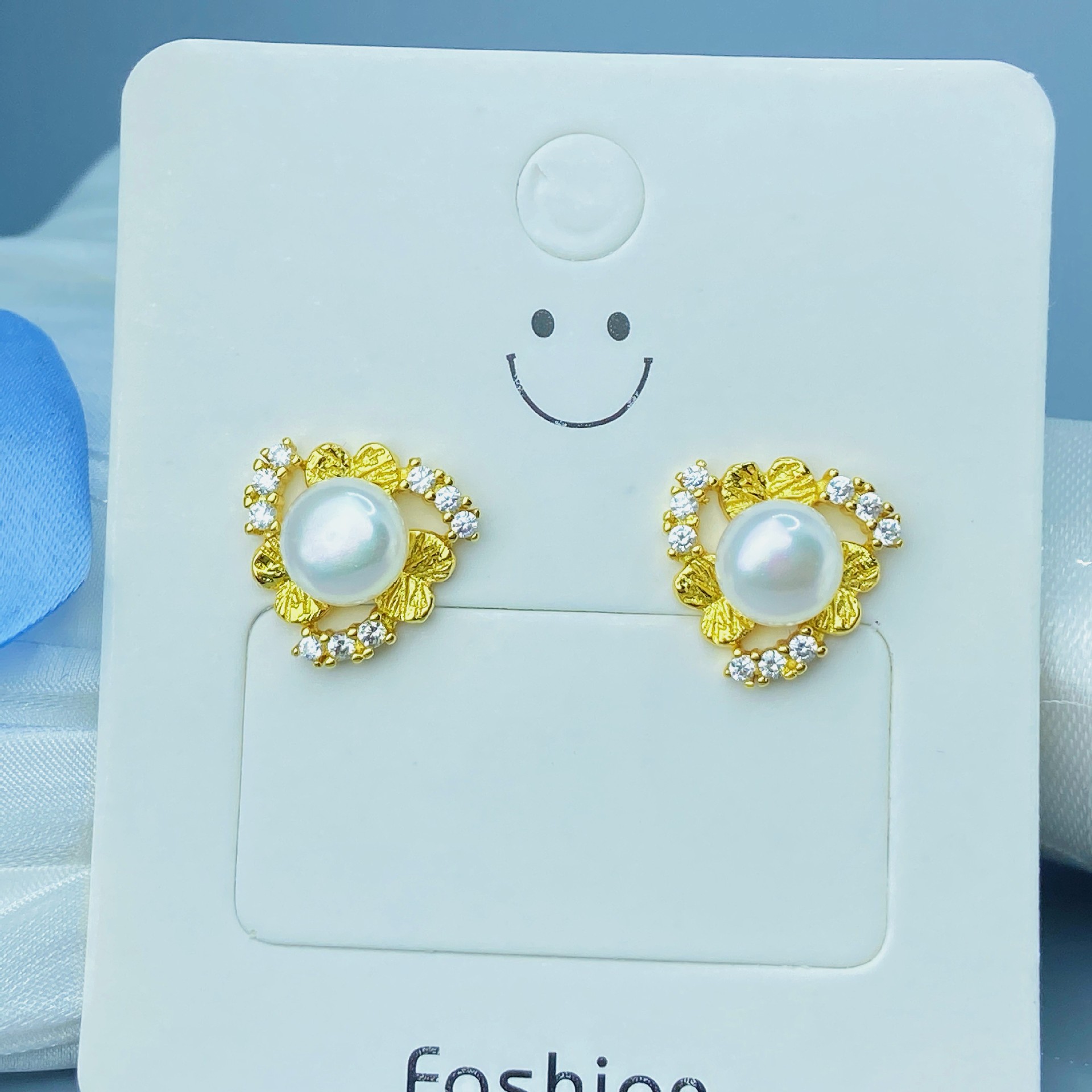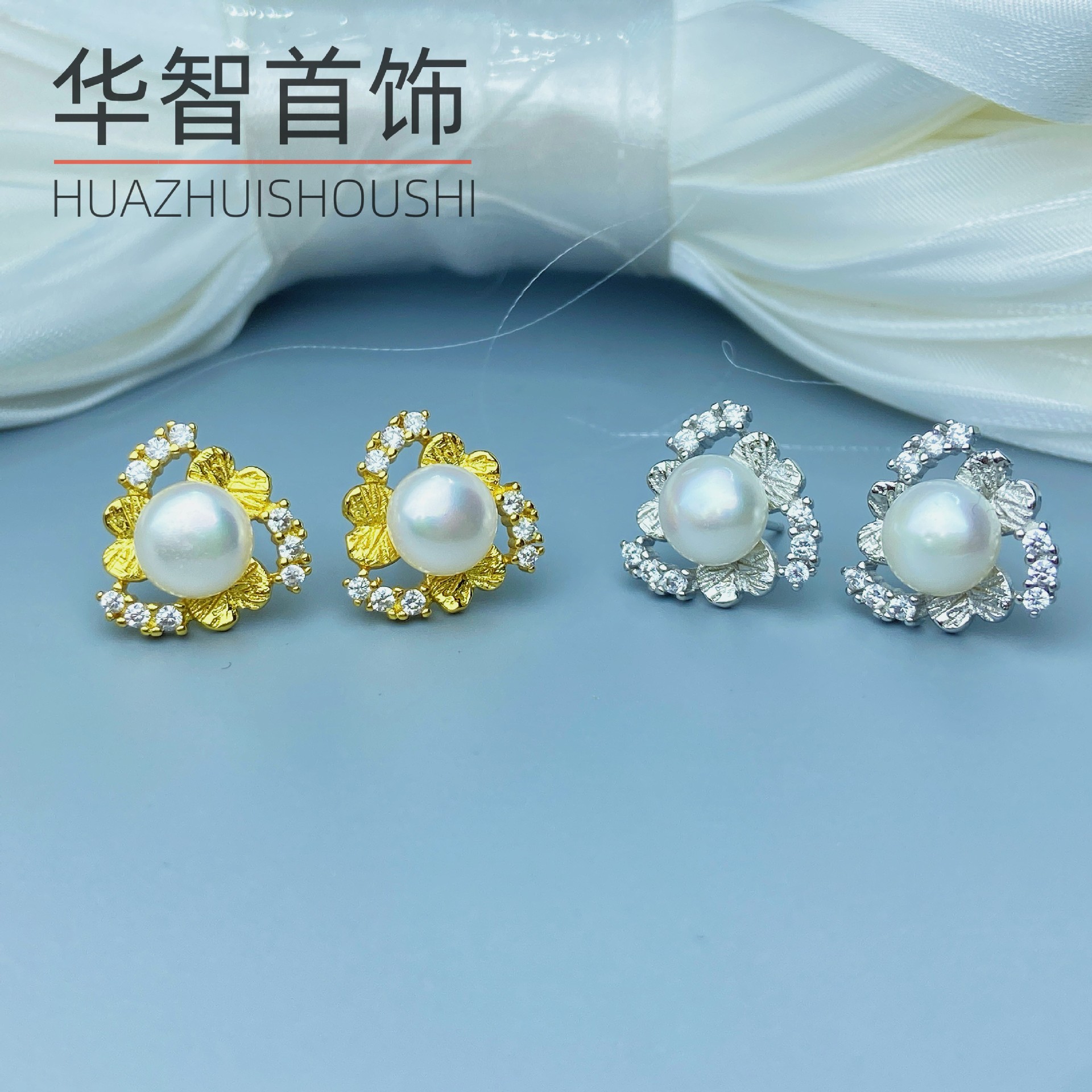 [Пустой держатель для сережек] Белое золото; [Держатель для сережек] Золото; [Серьги с пресноводным жемчугом 8M Белый] Белое золото; [Серьги с пресноводным жемчугом 8М Белые] Золото