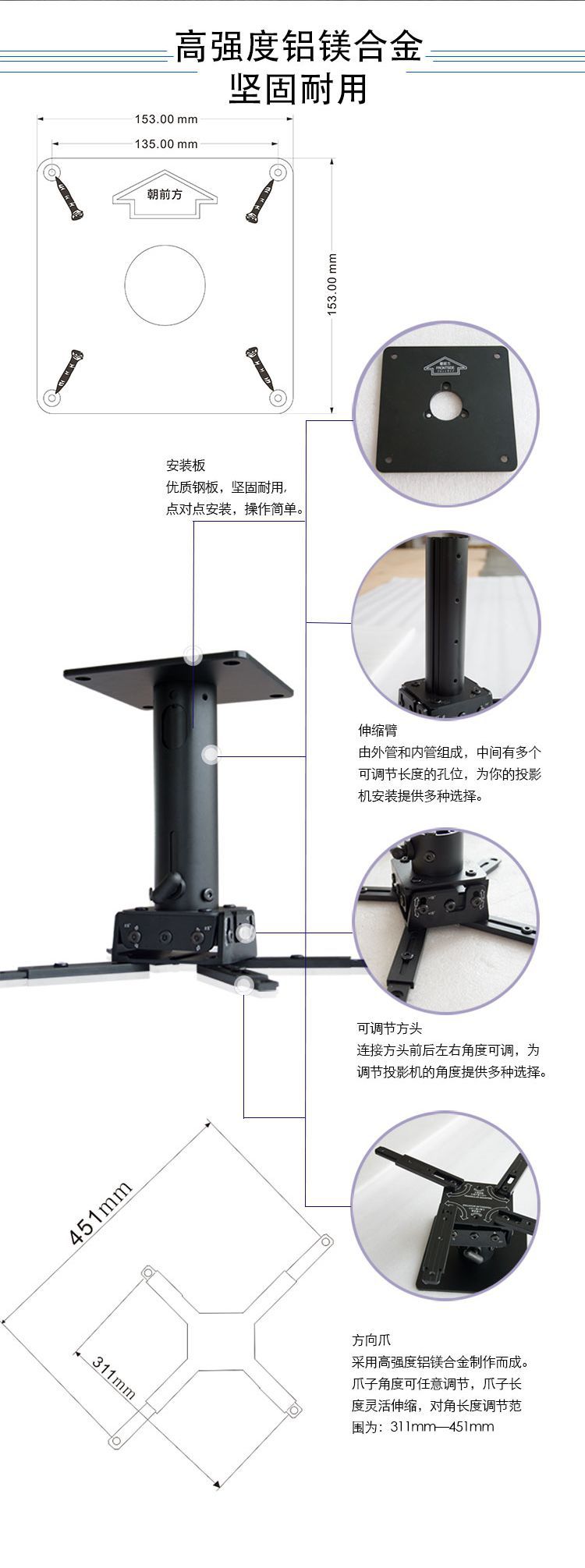 Weisheng стационарный проектор универсальный проектор кронштейн телескопический DJ1 алюминиевый магниевый сплав длинный стержень короткий стержень