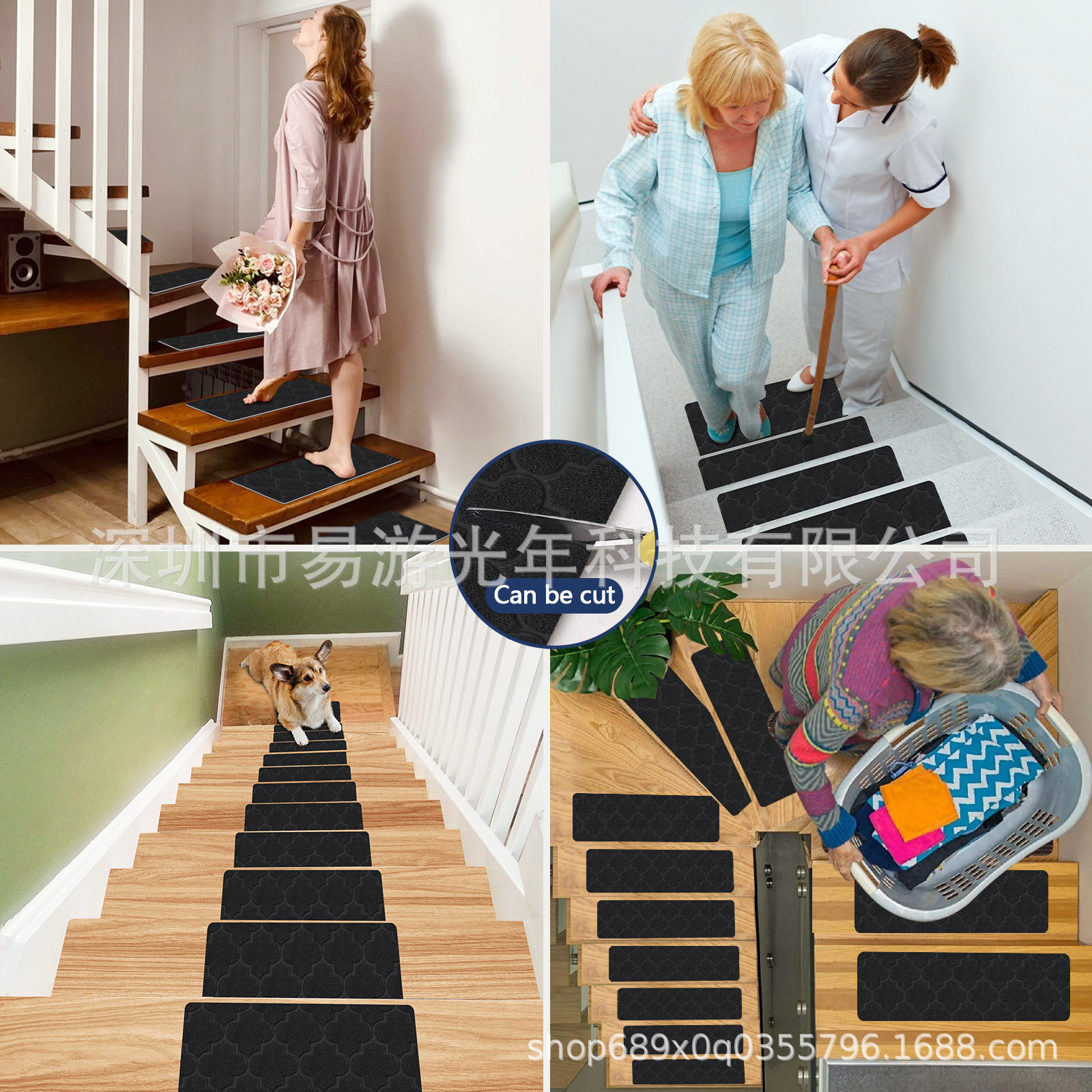 Лестничный ковер с тиснением, липкий коврик для ступеней, дуплексный коврик для лестницы, противоскользящий коврик без клея, для домашнего использования