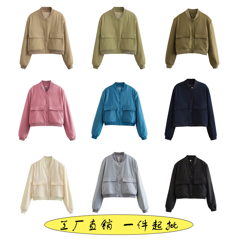 Плюс цвет трансграничной внешней торговли мода оптом повседневная европейская и американская большая карман осенняя городская короткая куртка куртка женская одежда