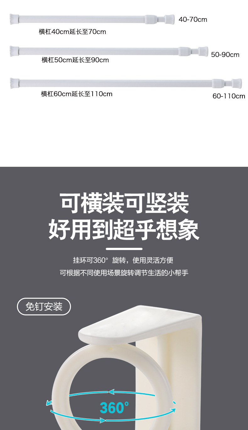 Вращающееся подвесное кольцо, карниз для штор, телескопический стержень, фиксированный кронштейн, кухонный подвесной стержень, дверное занавесное полотенце, вращающийся крючок без перфорации