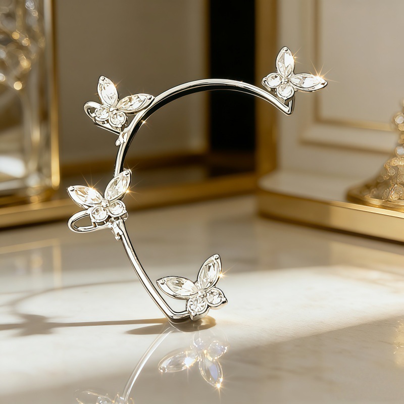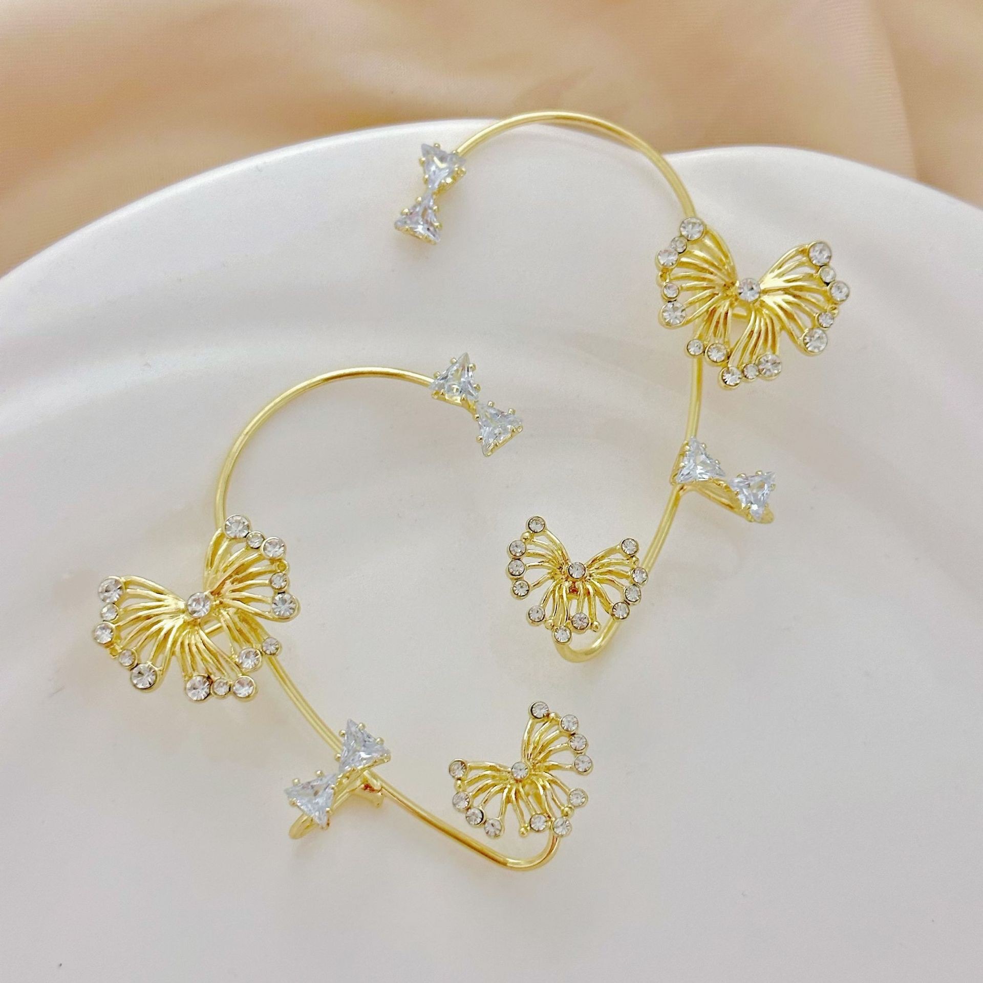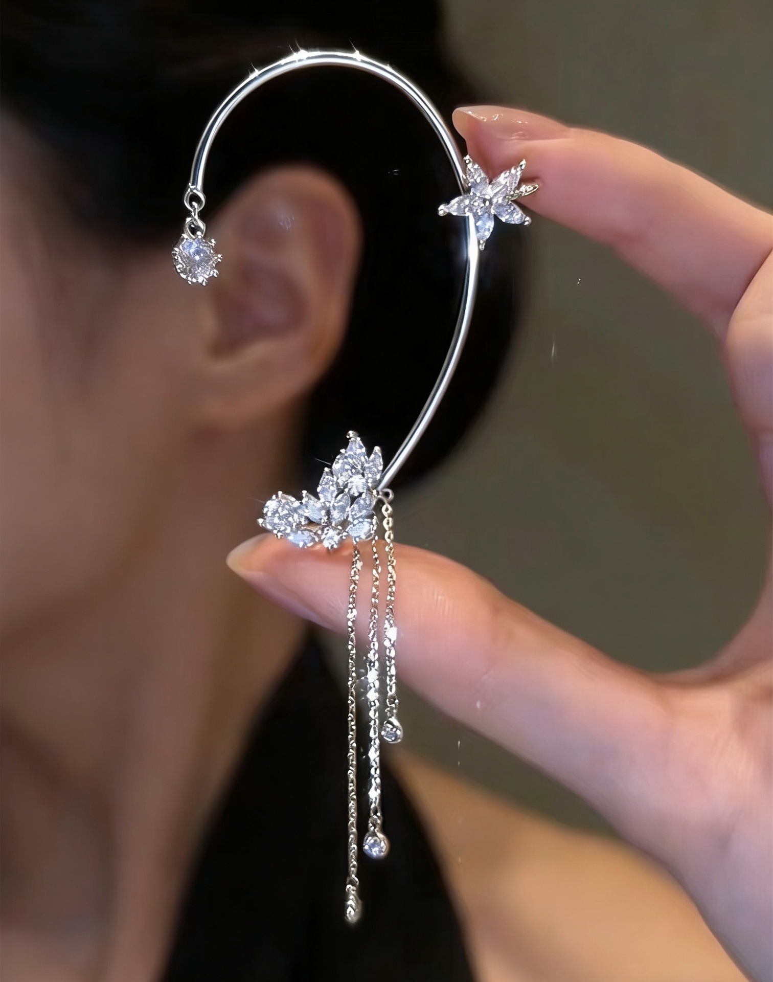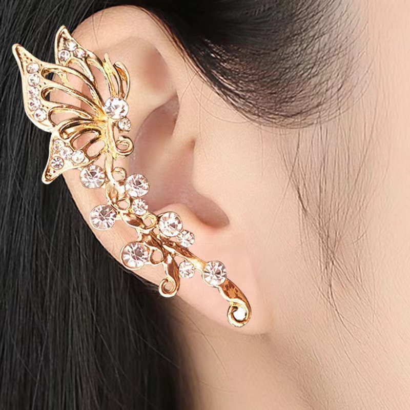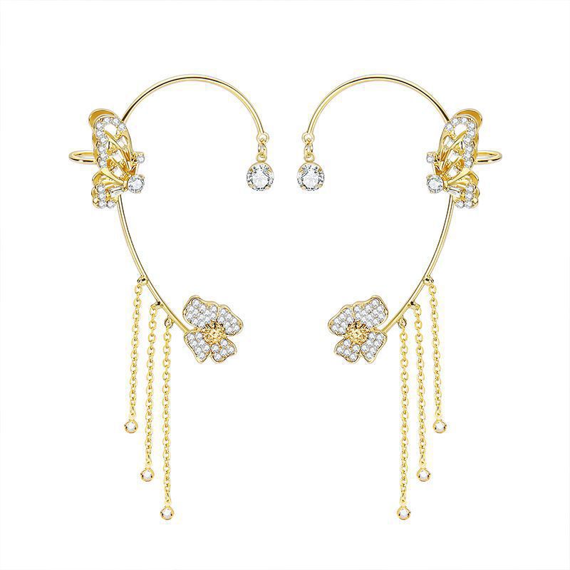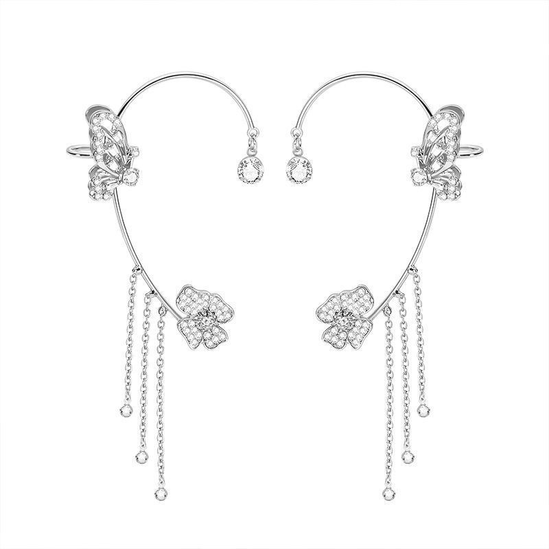 Серьги-каффы TikTok с бриллиантами, высококачественные, с кисточками и бабочками, длинные, цельные, элегантные, без прокола, легкие, роскошные, аксессуары для ушей