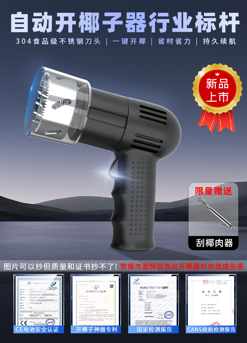 2025新款独家私模专利产品-开椰子神器,厂家直销,源头货源,欢迎新老客户取样,量大私聊,线上统一控价【活动价168--188,日常平销价格188】