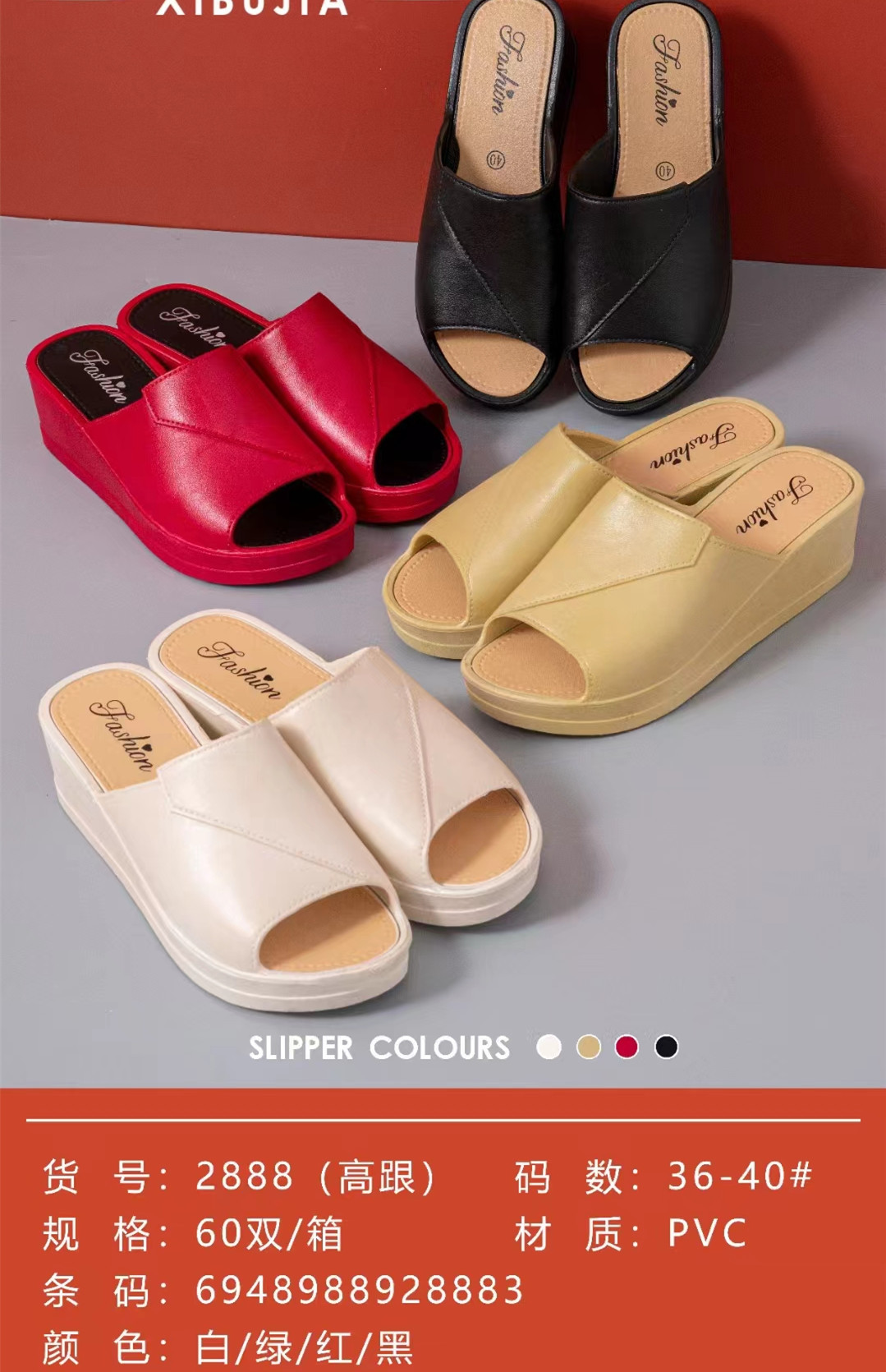 Xi Bojia летние новые высокие каблуки женские тапочки внутренние и наружные противоскользящие и износостойкие мамы высокие каблуки холодные тапочки оптом