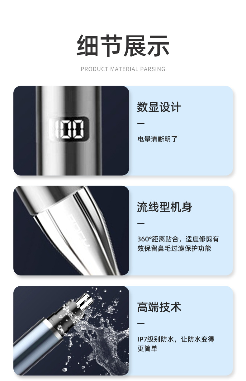 Производитель портативных компактных электрических триммеров для чистки носовой полости с цифровым дисплеем и функцией бритья носа, работающих от аккумулятора.