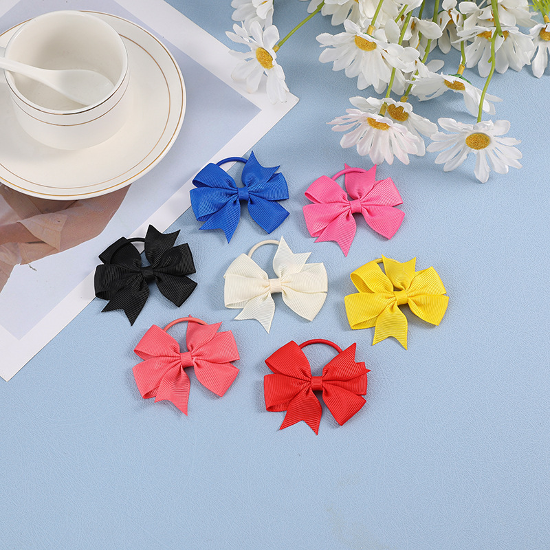【名称】外贸新款手工多色六角结儿童发圈燕尾蝴蝶结日常纯色婴儿头饰批发