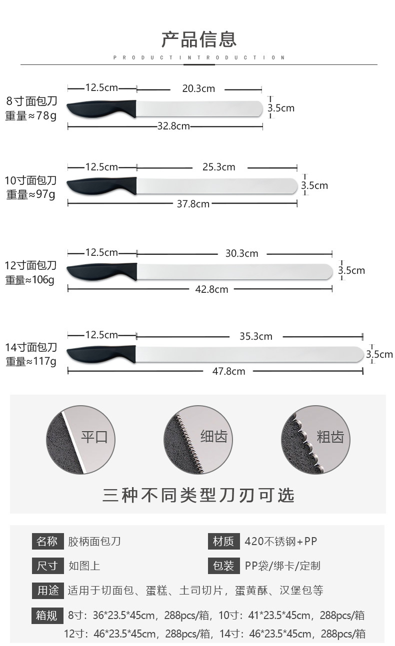 塑料柄不锈钢蛋糕刀锯齿刀 烘焙工具吐司刀蛋糕三明治切片面包刀