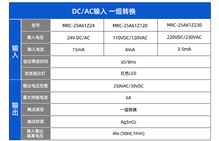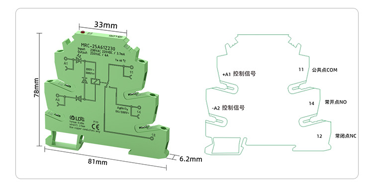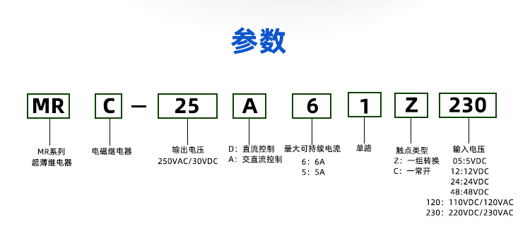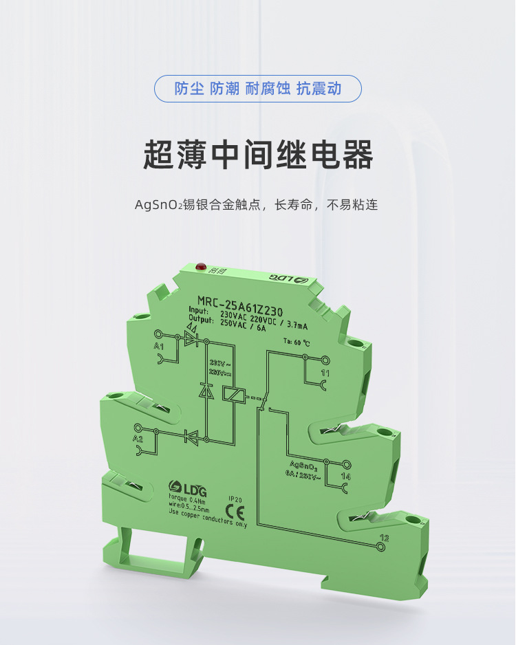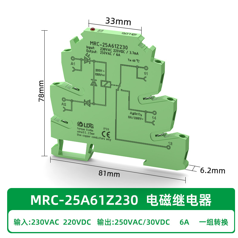 Ультратонкое промежуточное электромагнитное реле MRC-25A61Z230, модуль 230В AC/DC, 6А, один нормально открытый, один нормально закрытый