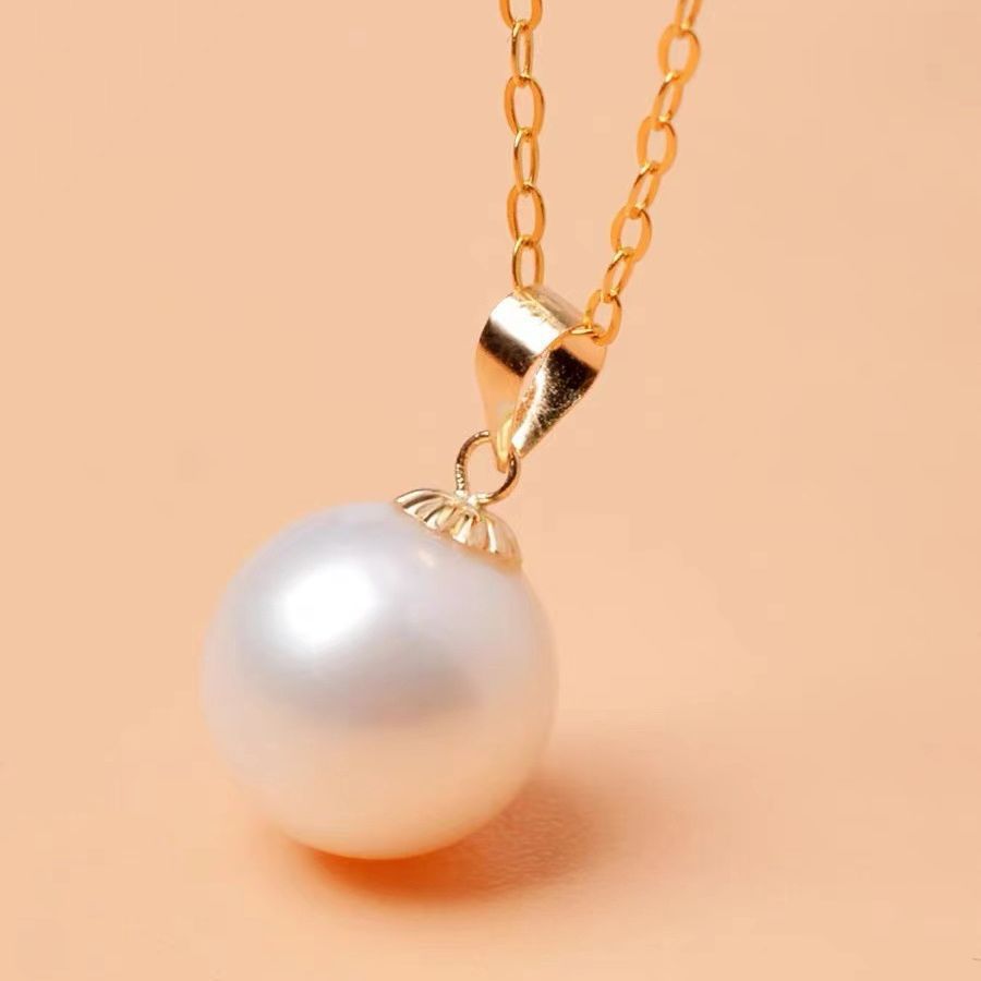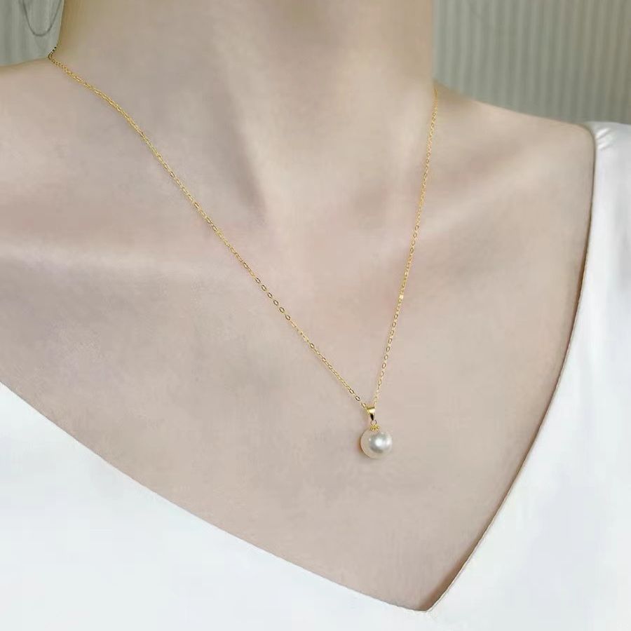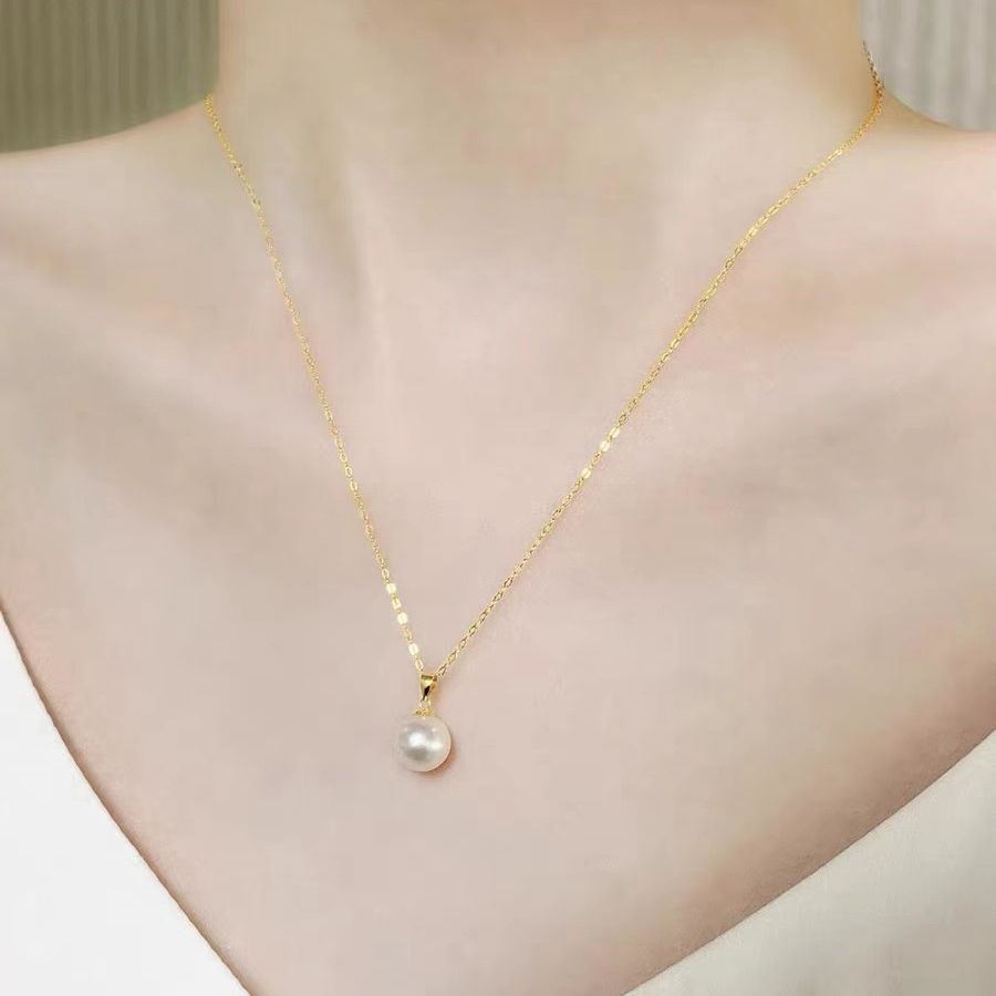 Золотое ожерелье из чистого золота 18 карат, кулон из натурального пресноводного жемчуга, цепочка на ключицу, K золото, женский практичный подарок на день рождения, новый стиль