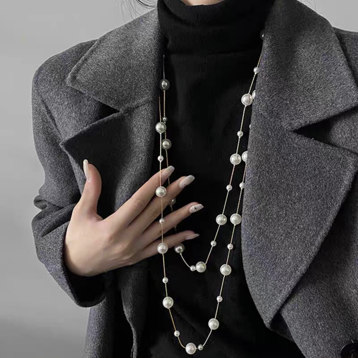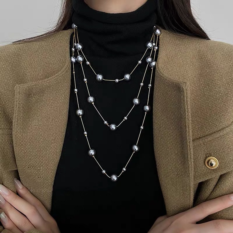 Корейское модное длинное жемчужное ожерелье, женственное, легкая роскошь, высококачественная цепочка для свитера, универсальное осенне-зимнее ожерелье оптом