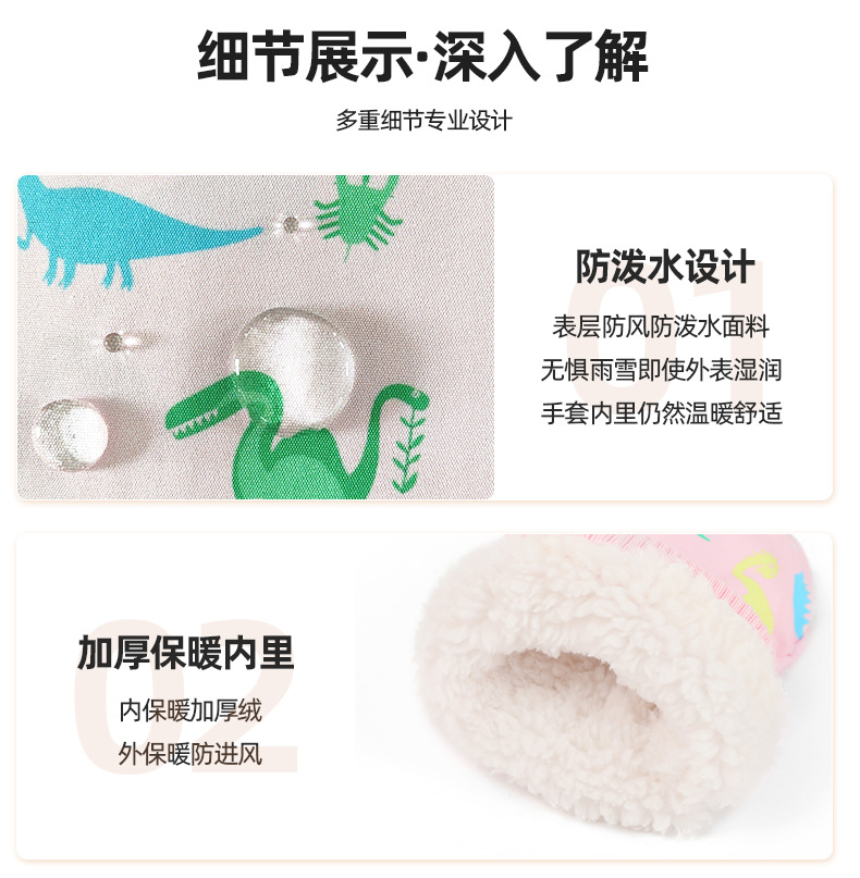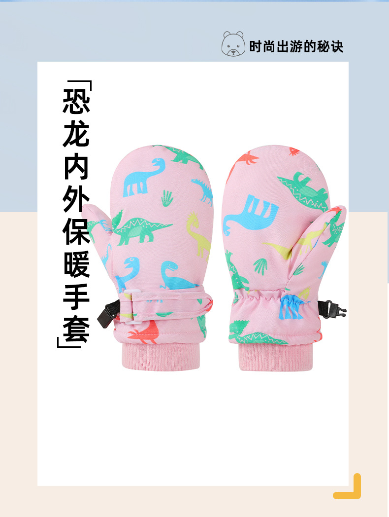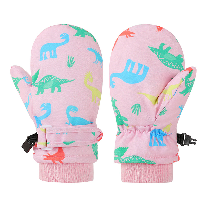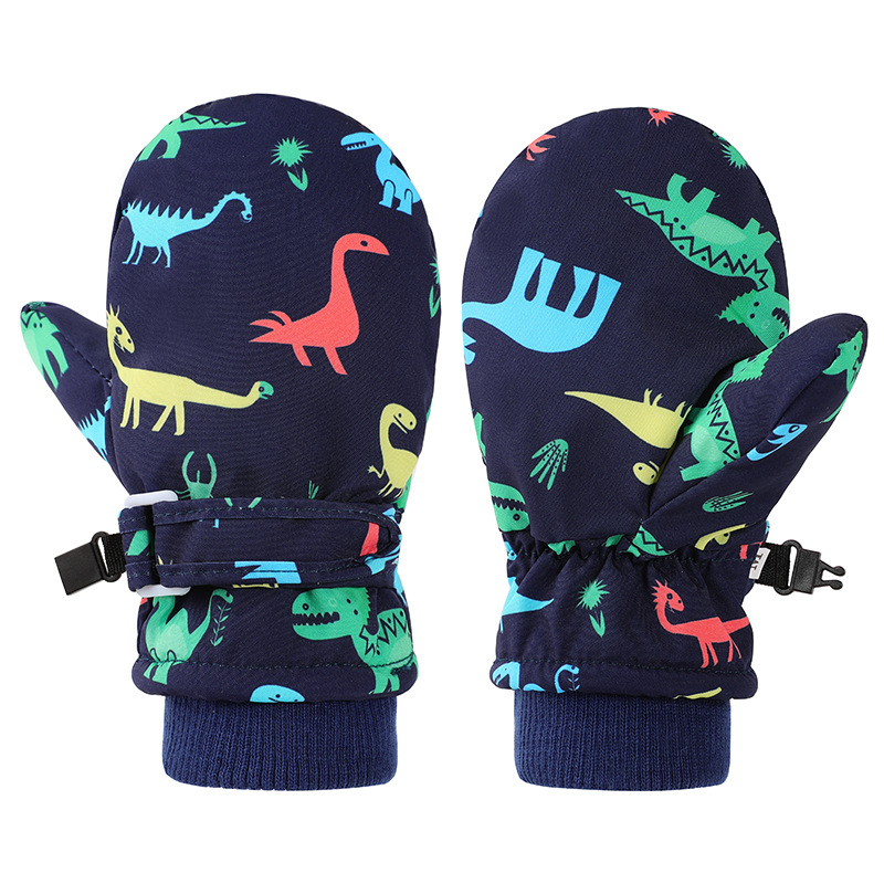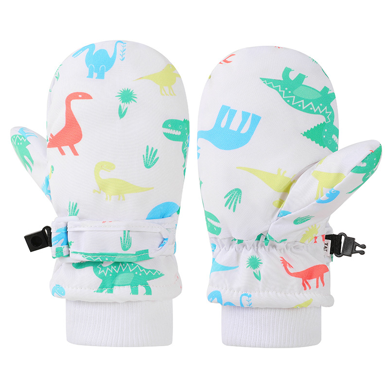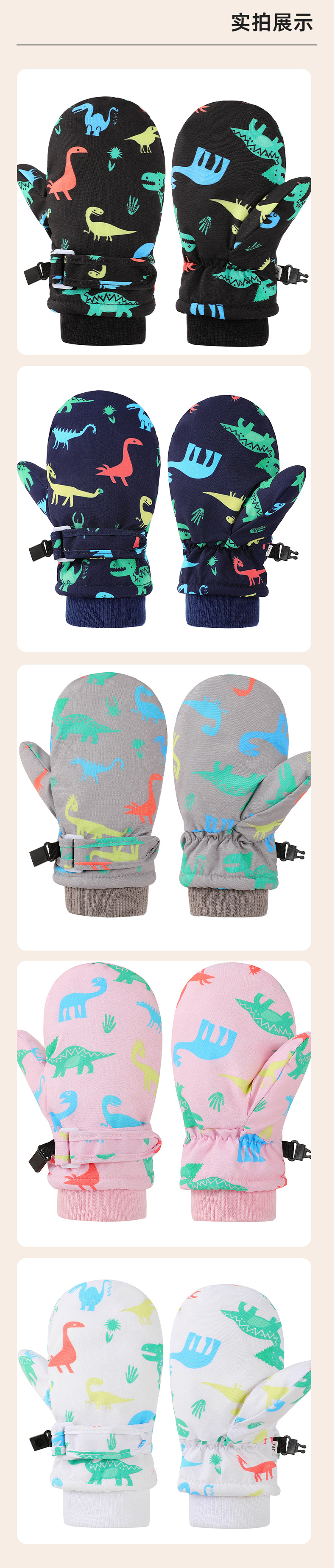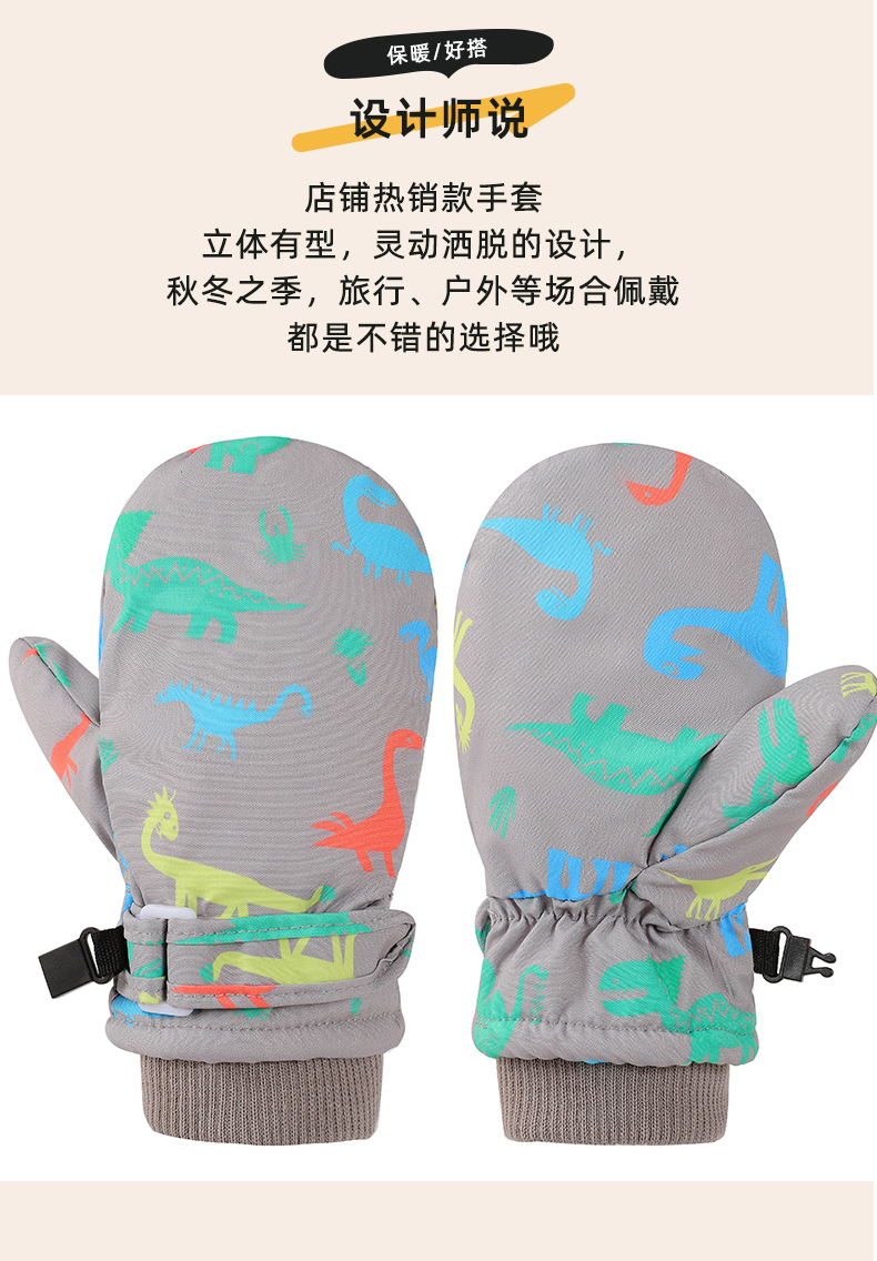 Европейские и американские трансграничные детские принты маленькие динозавры против брызг воды теплые перчатки нескользящие и бархатные толстые лыжные перчатки на открытом воздухе