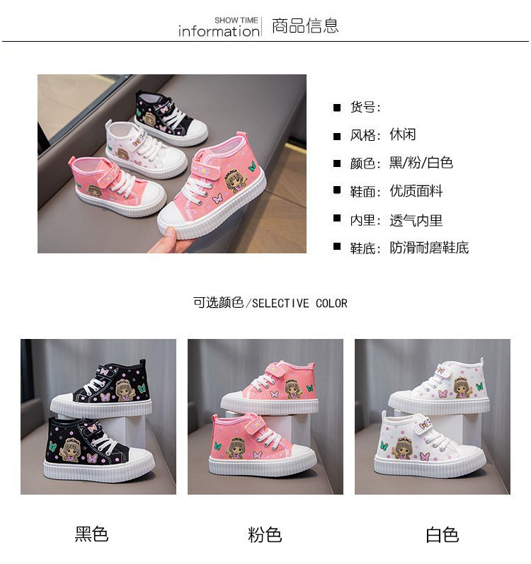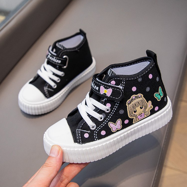 Мультяшные детские туфли 2024 осенние высокие детские брезентовые туфли детские мягкие подошвы