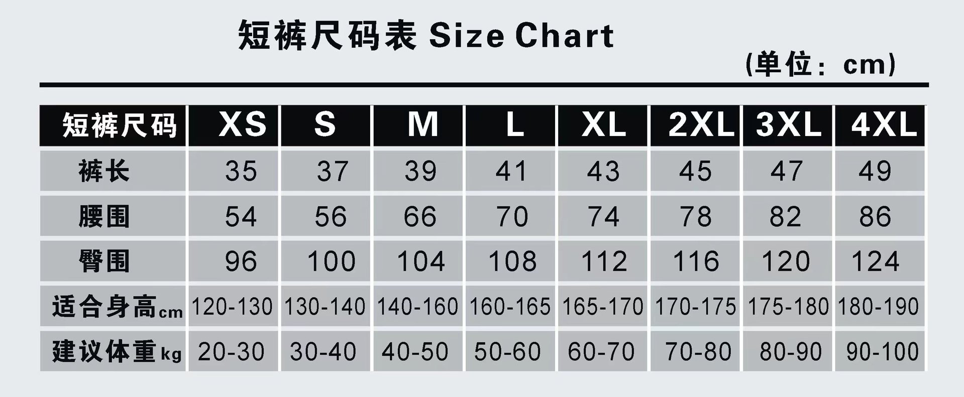 M; L; XL; 2XL; 3XL; 4XL