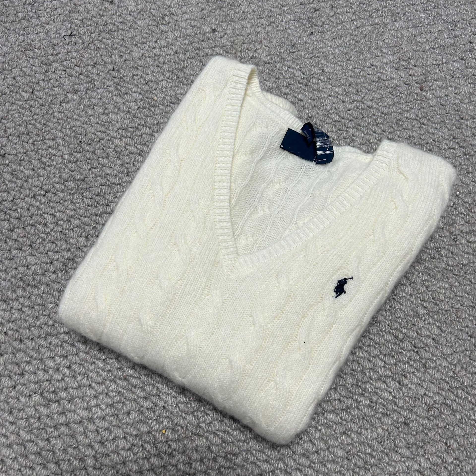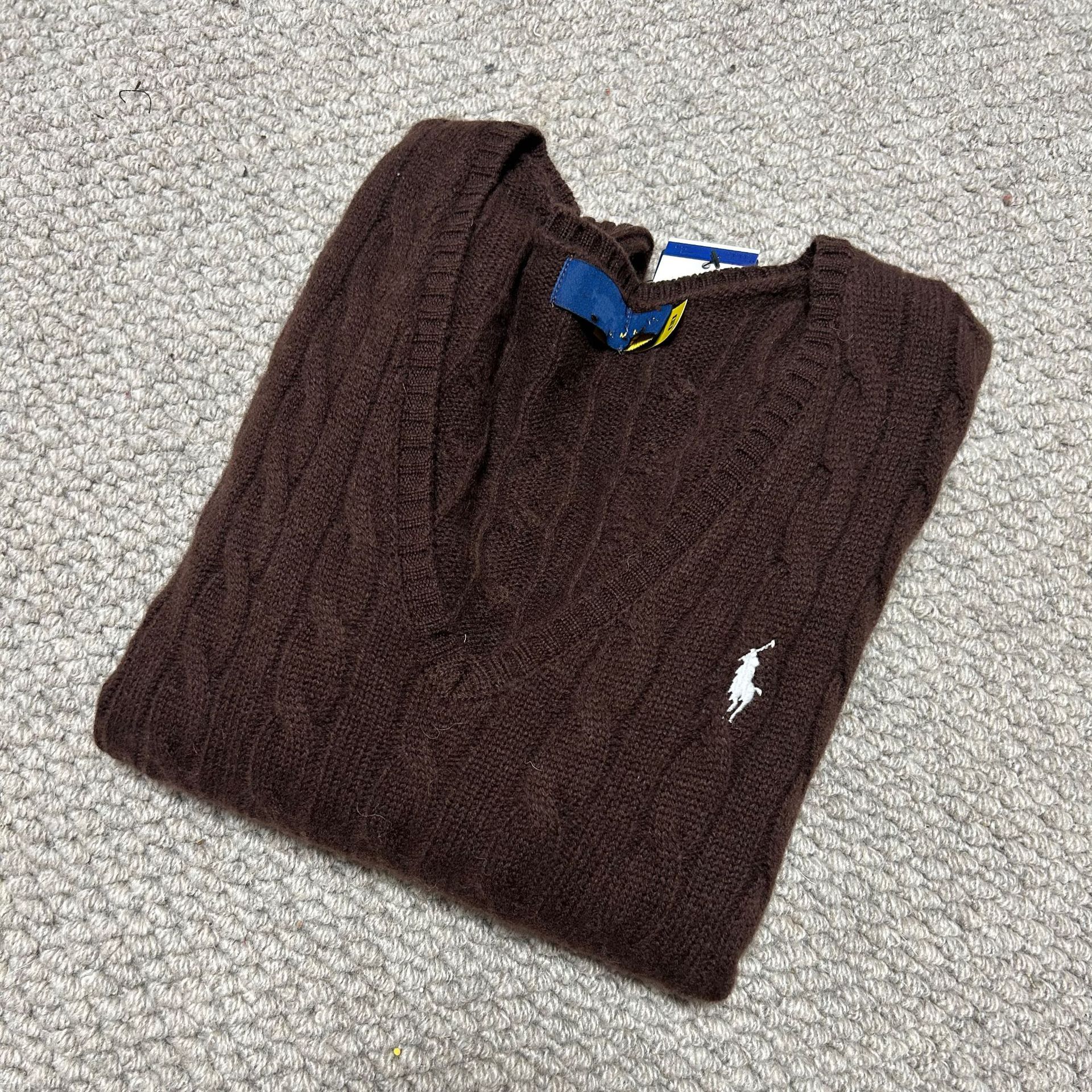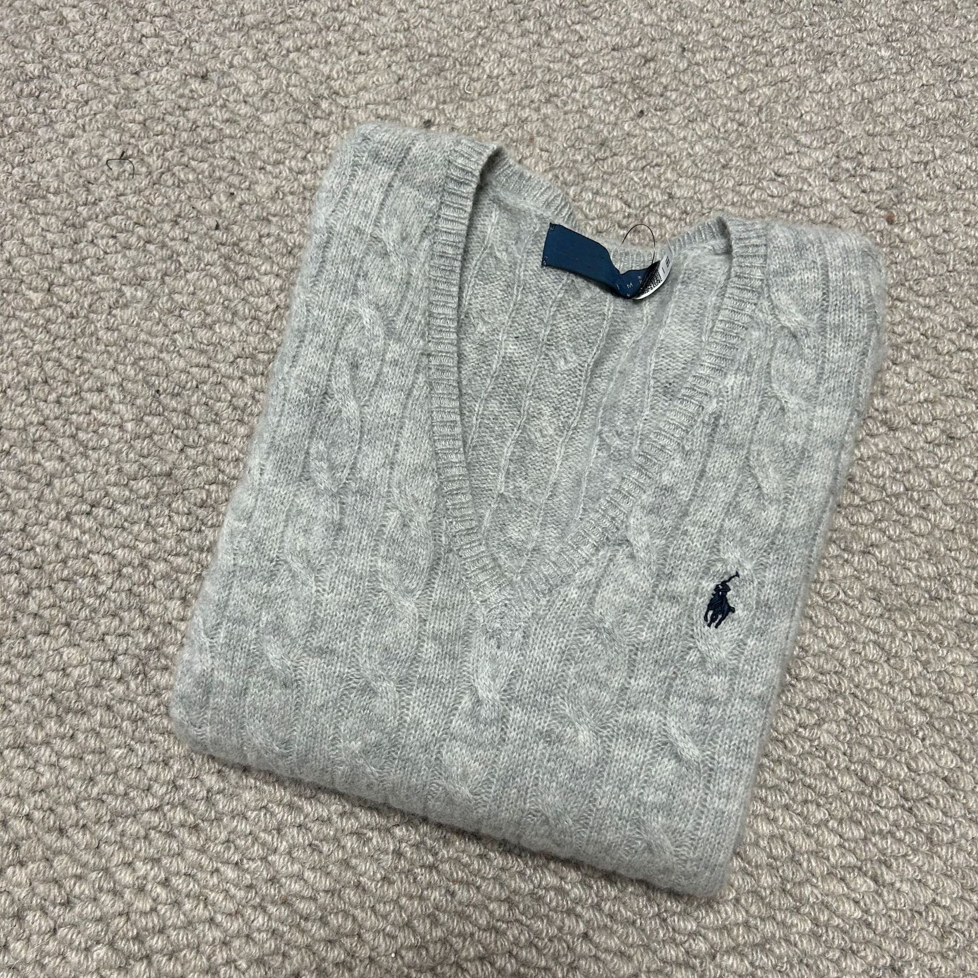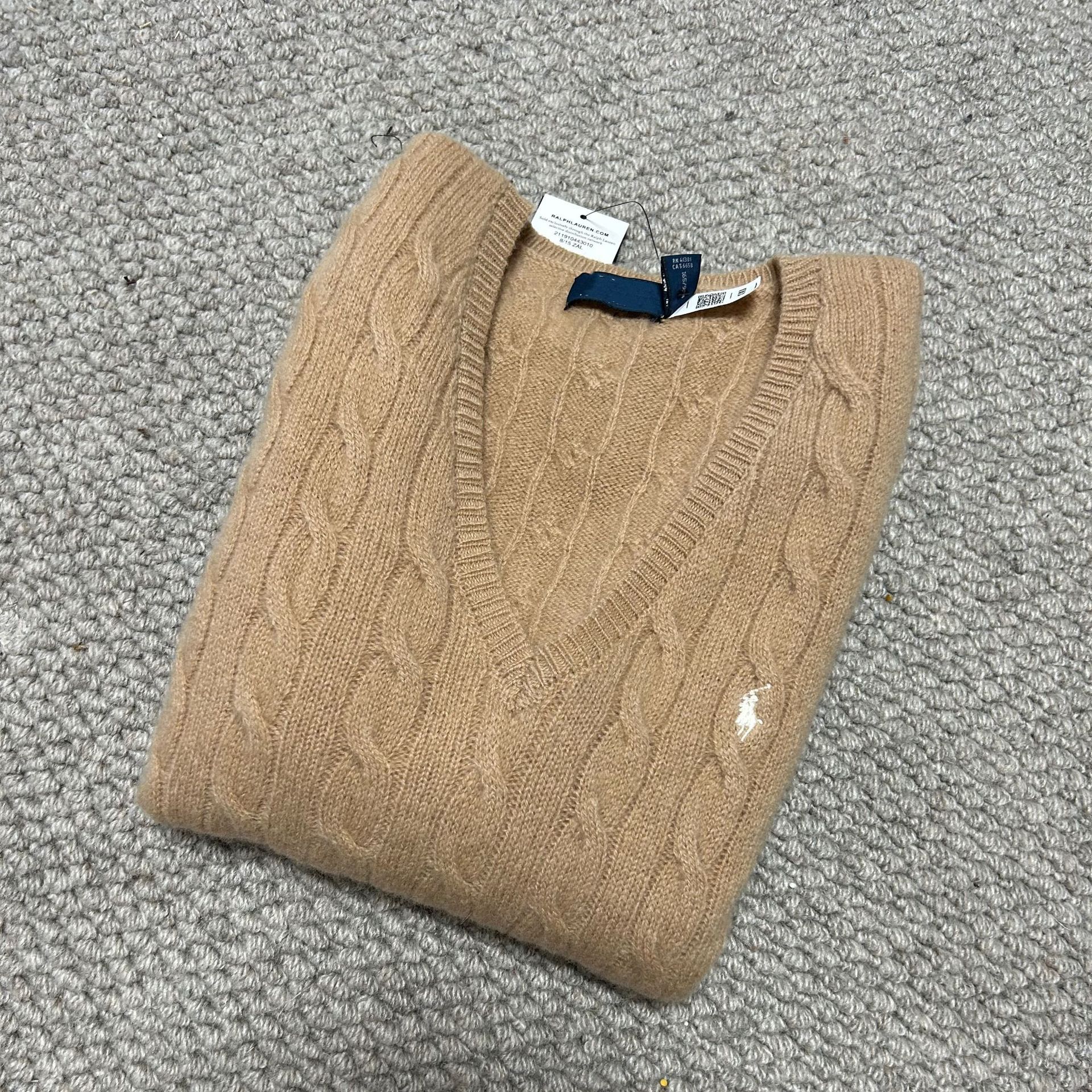 Свитер женский из шерсти (80% шерсть, 20% кашемир) с V-образным вырезом, вязка косичка, с вышивкой логотипа RL Laff Pony.