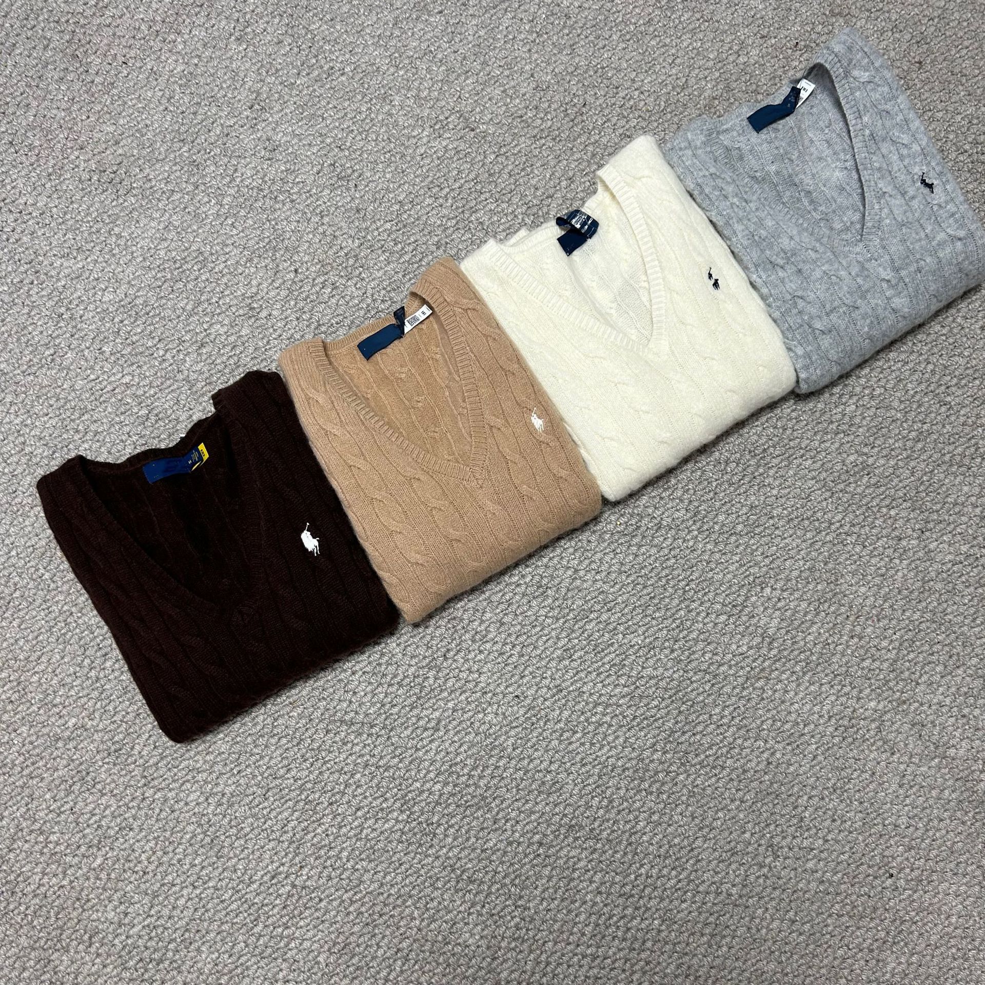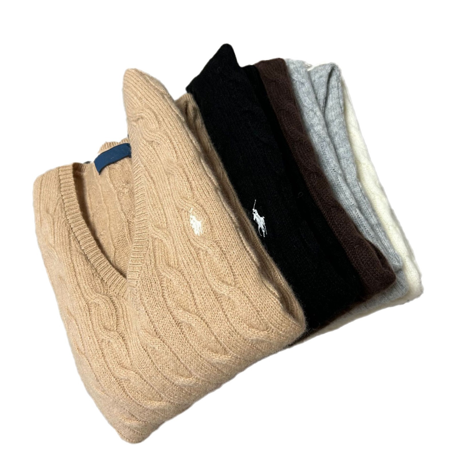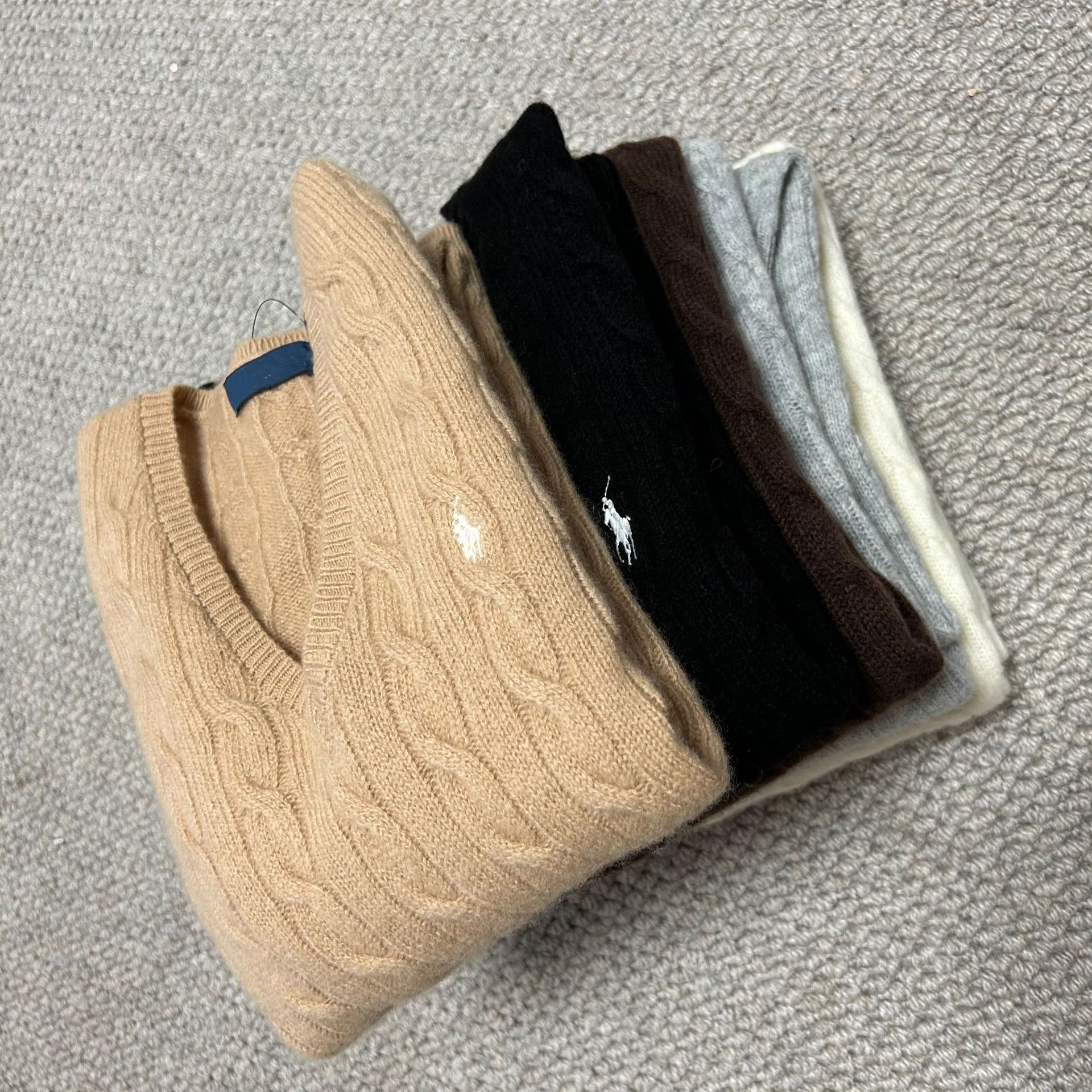 Свитер женский из шерсти (80% шерсть, 20% кашемир) с V-образным вырезом, вязка косичка, с вышивкой логотипа RL Laff Pony.