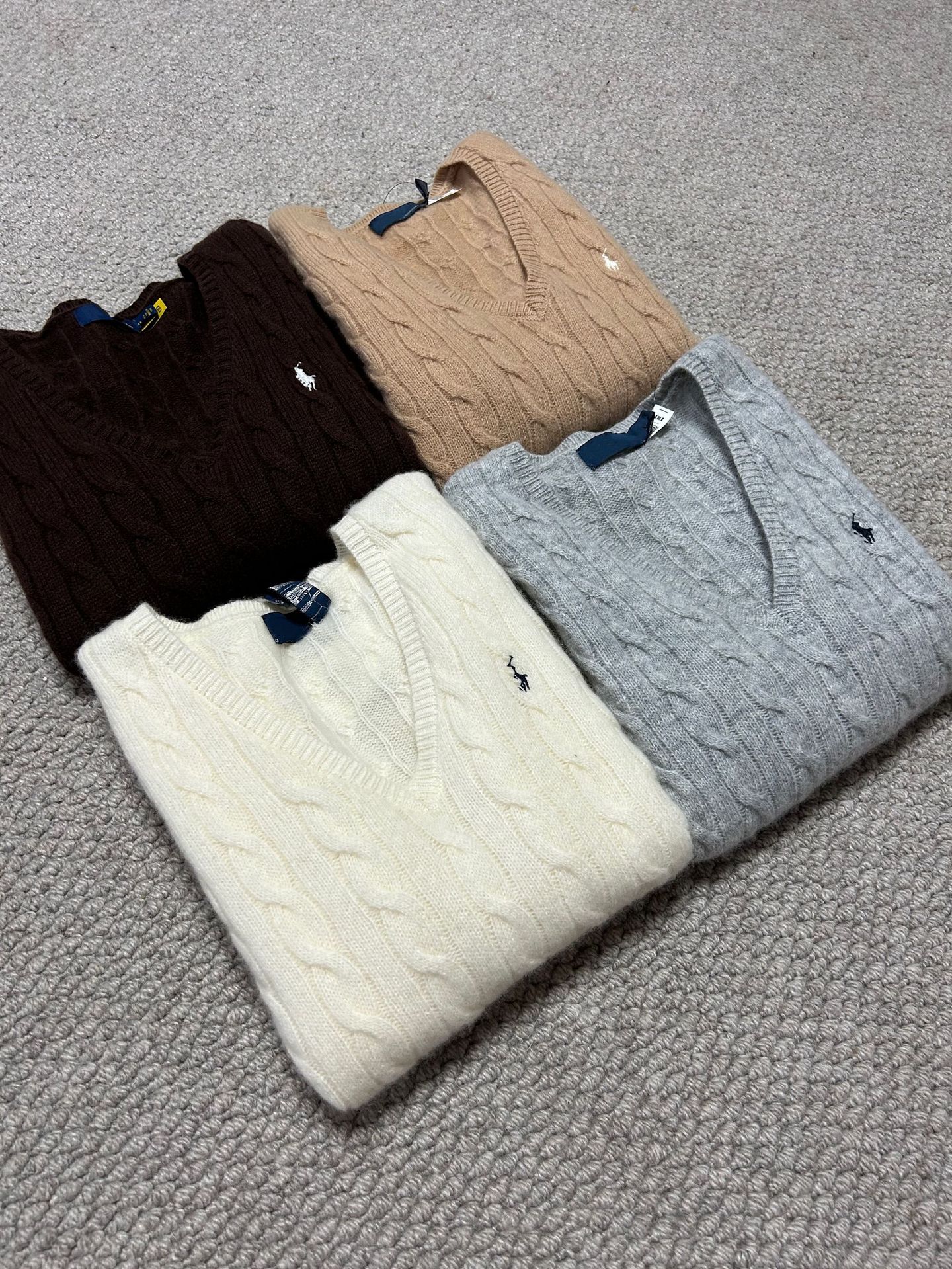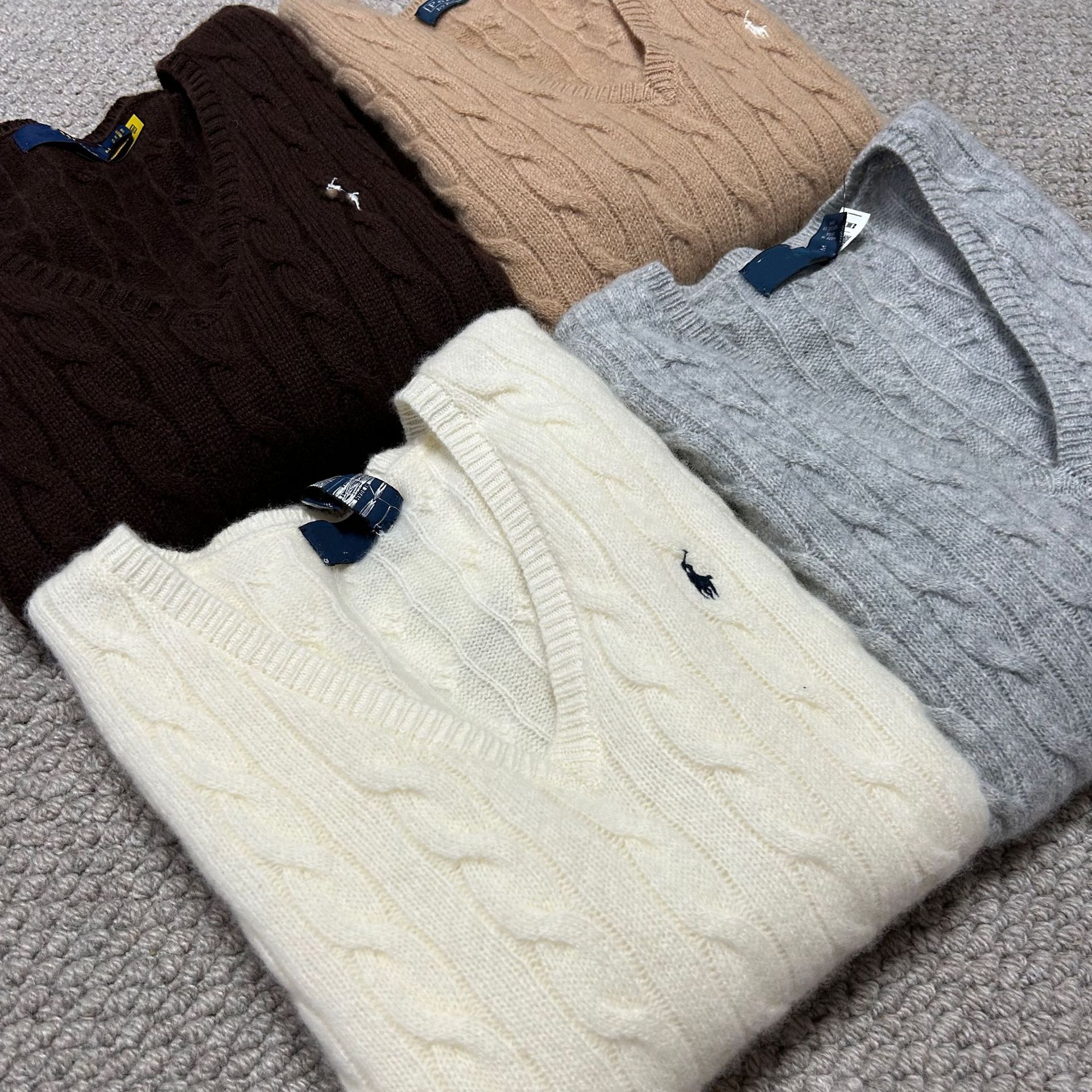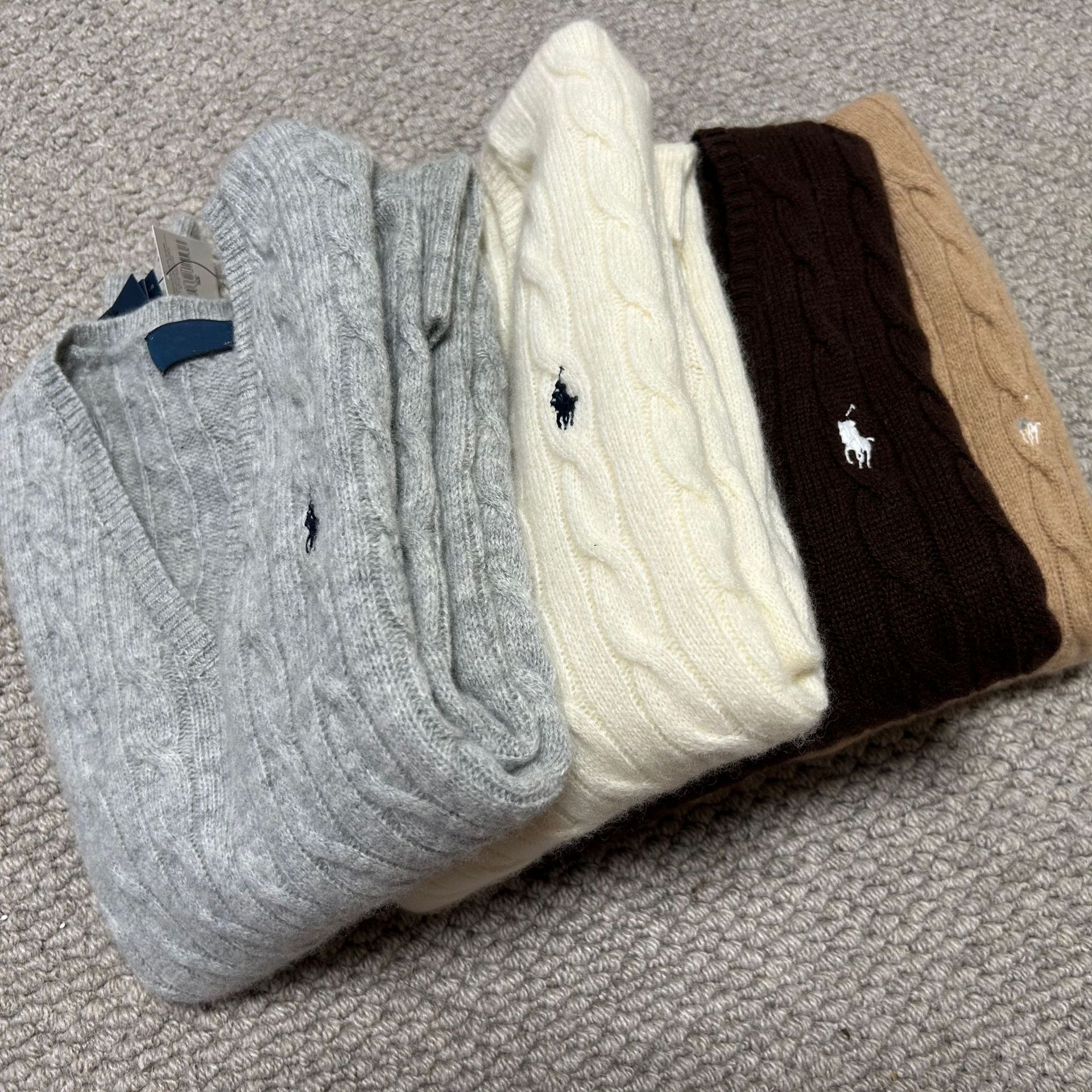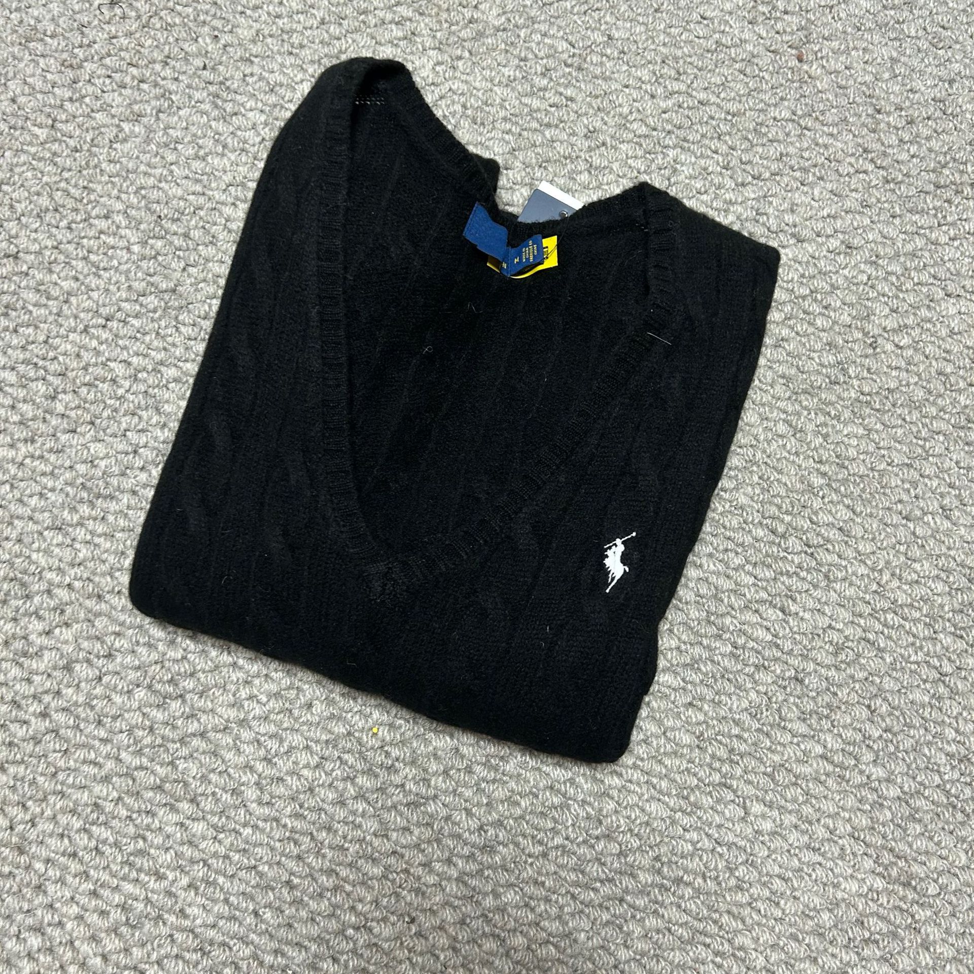 Свитер женский из шерсти (80% шерсть, 20% кашемир) с V-образным вырезом, вязка косичка, с вышивкой логотипа RL Laff Pony.