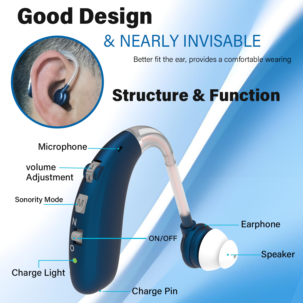 Новый транскордонный слуховой аппарат с зарядкой через USB, удобная ручка уровня 6, громкость, оптовая продажа слухового аппарата