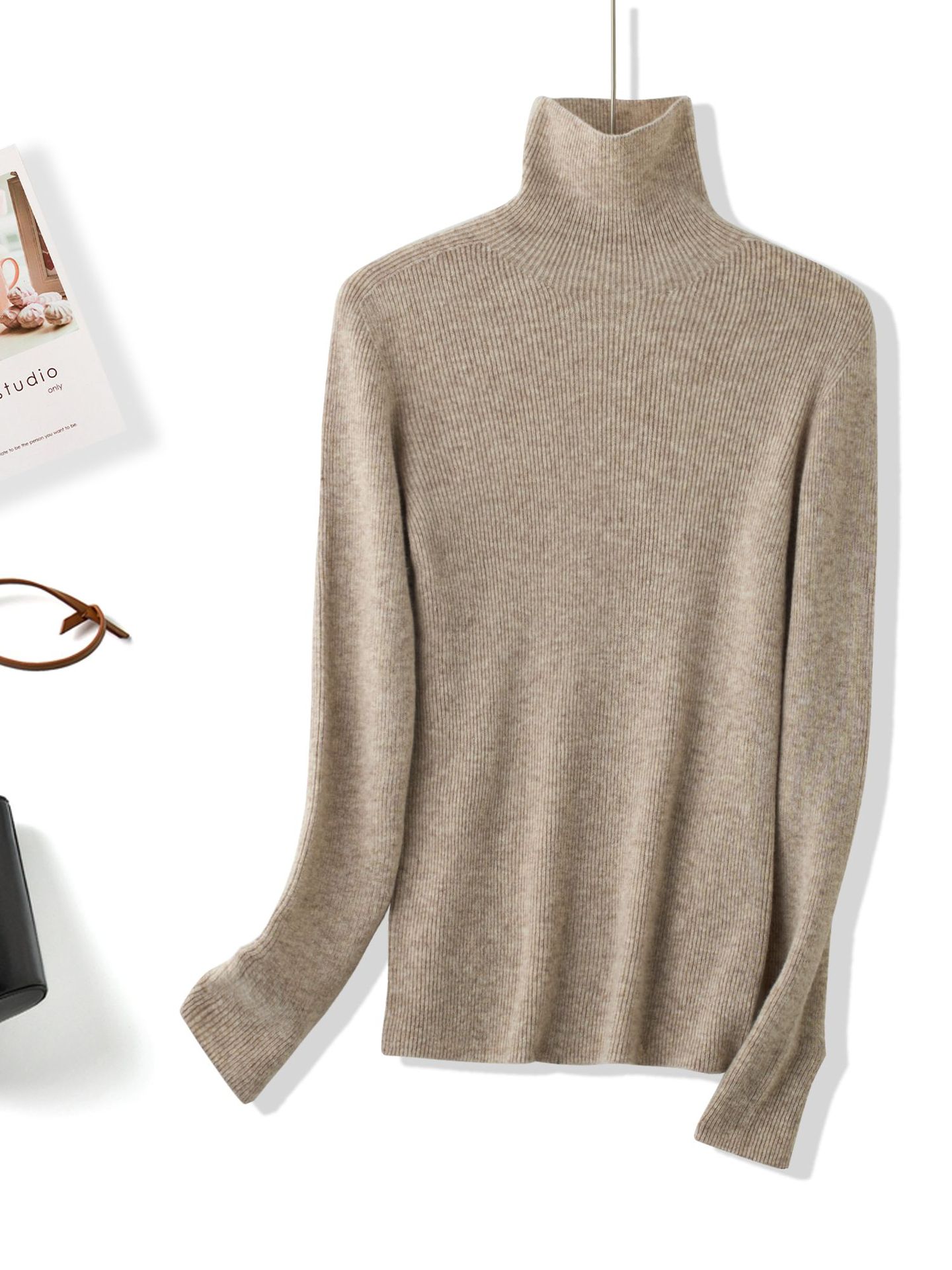 Женский трикотажный свитер-водолазка из шерсти, бесшовный, цельный, облегающий, с длинным рукавом, 20 цветов в наличии, коллекция 2025 года.
