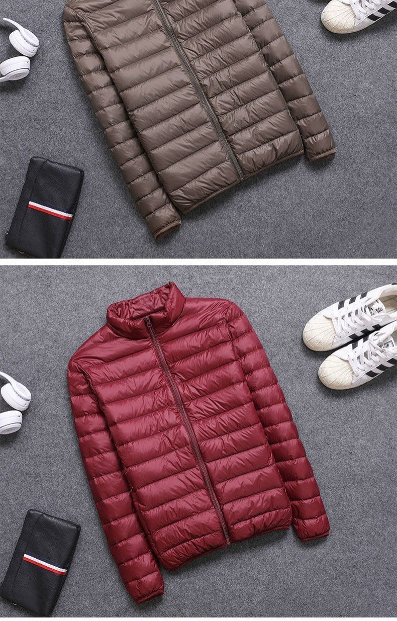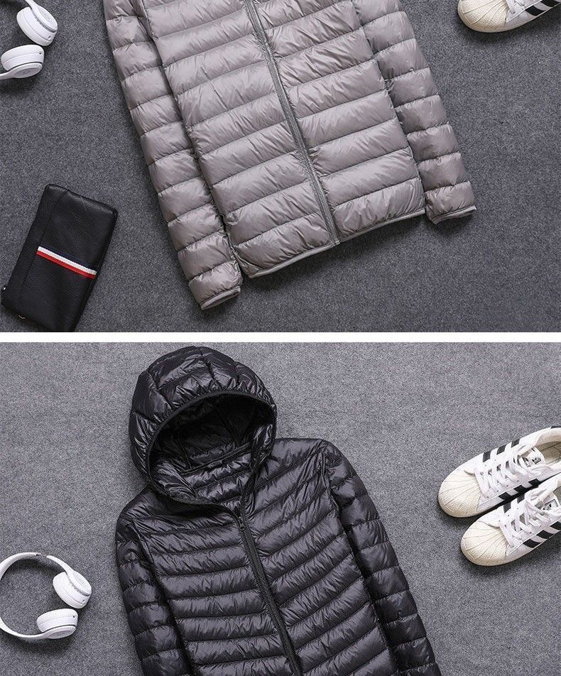Легкий пуховик 2025 года, мужская повседневная однотонная хлопковая куртка в полоску с капюшоном, теплая маленькая хлопковая куртка, облегающая посадка