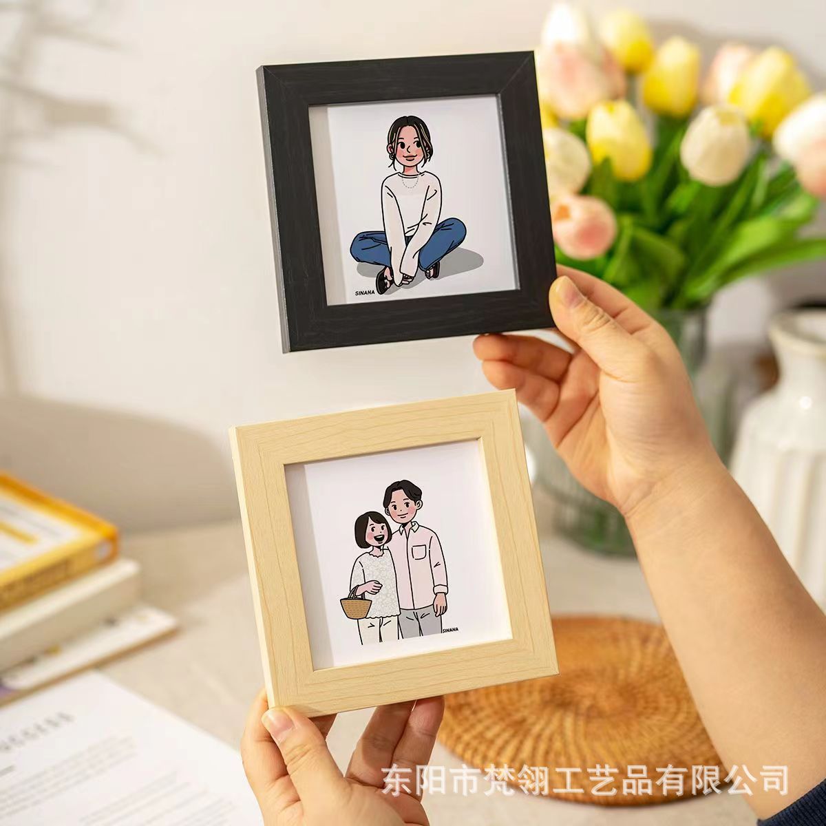 Маленькая квадратная 4-дюймовая фоторамка для маятника креативная мультяшная фоторамка деревянная мини-текстурная рамка для декоративной рамка оптом