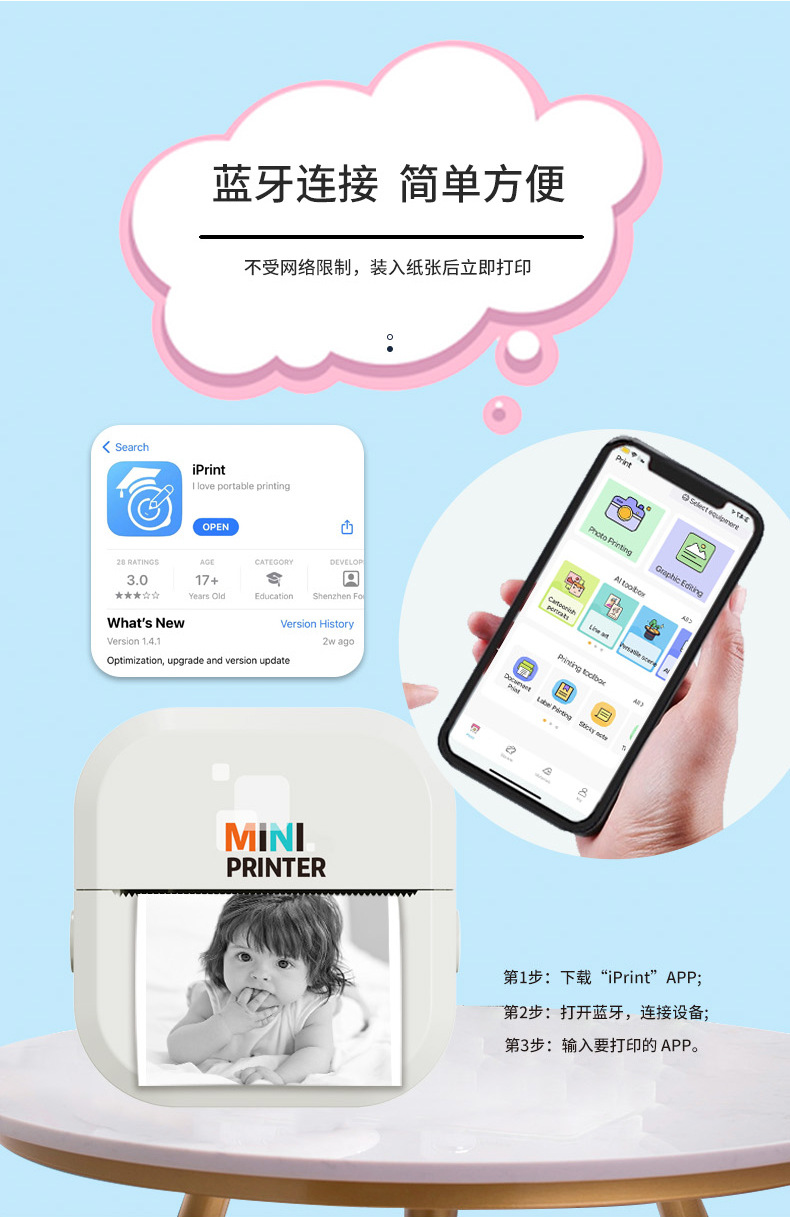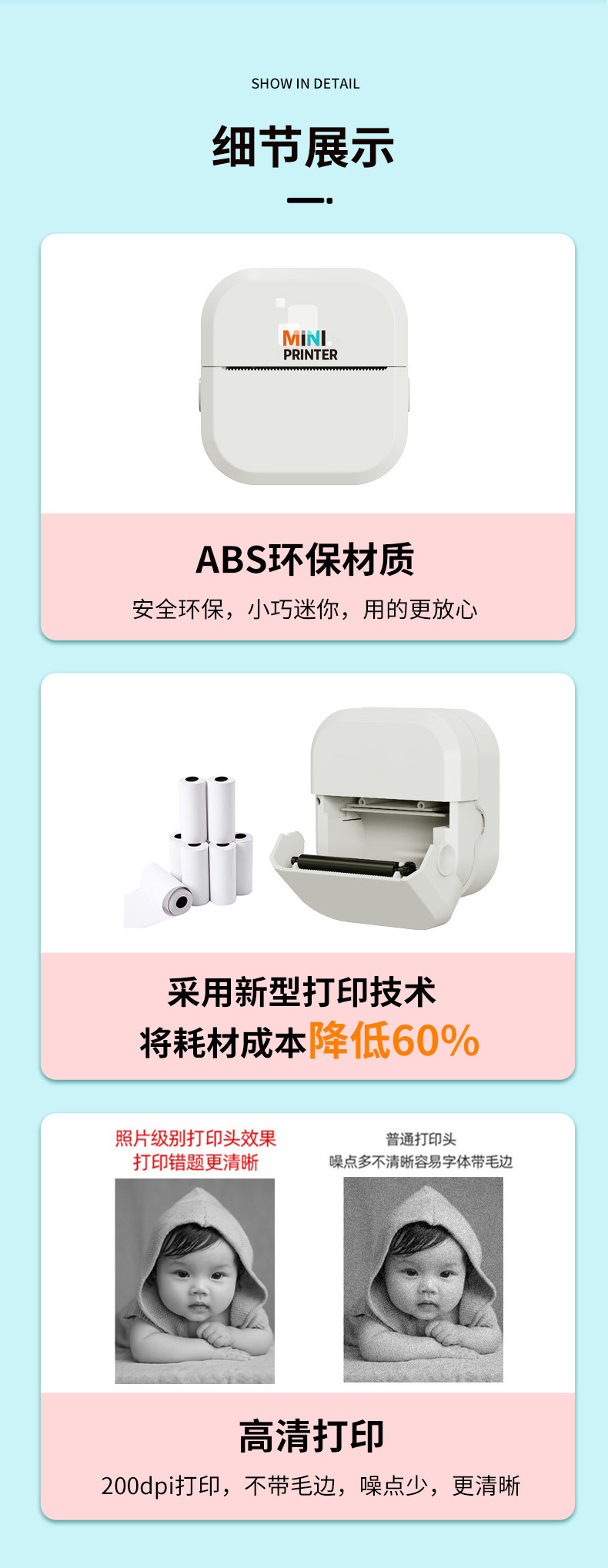 Трансграничный мини-принтер домашний мобильный телефон портативный карманный фото HD неправильный принтер подарок